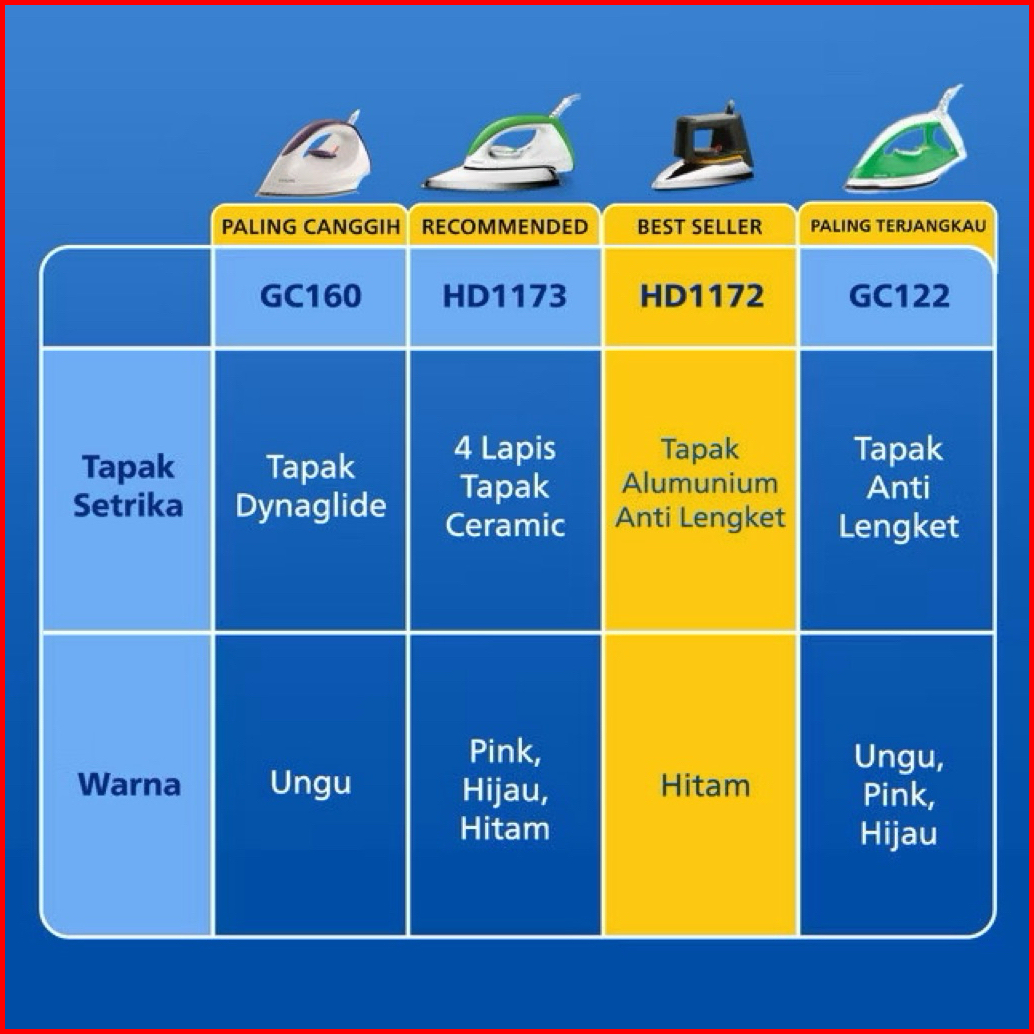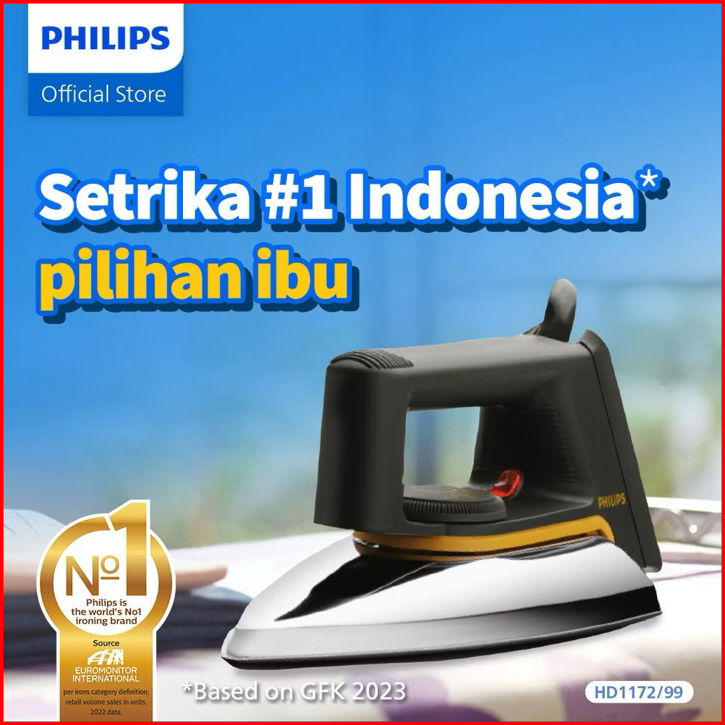 Setrika Philips Hd1172 Hd-1172 350 Watt Gosokan Baju Philips Hd 1172 Dry Iron 100 Ori