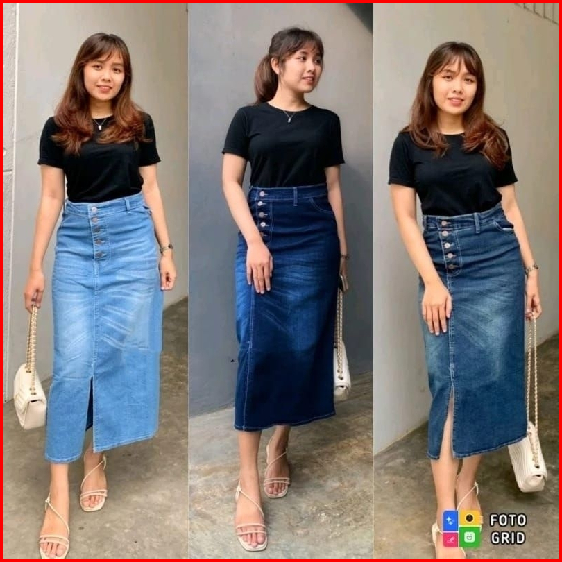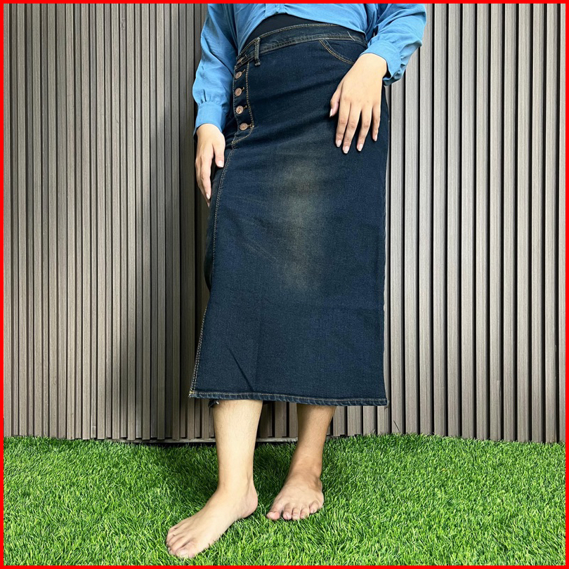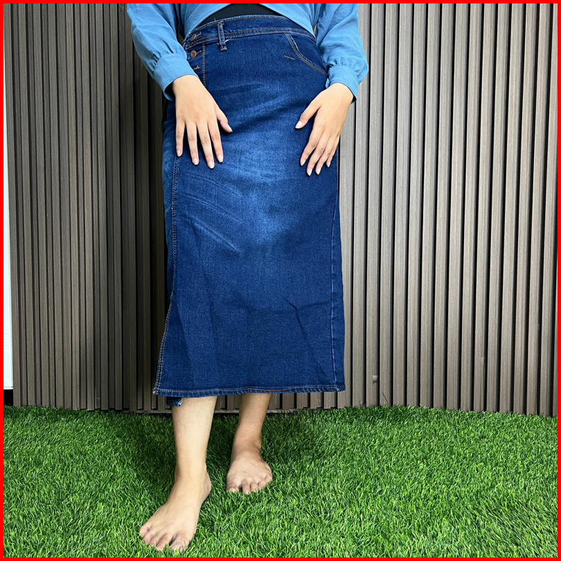 Rok Span Jeans Skirt Jeans Stretch 7 9 Belah Samping Wanita