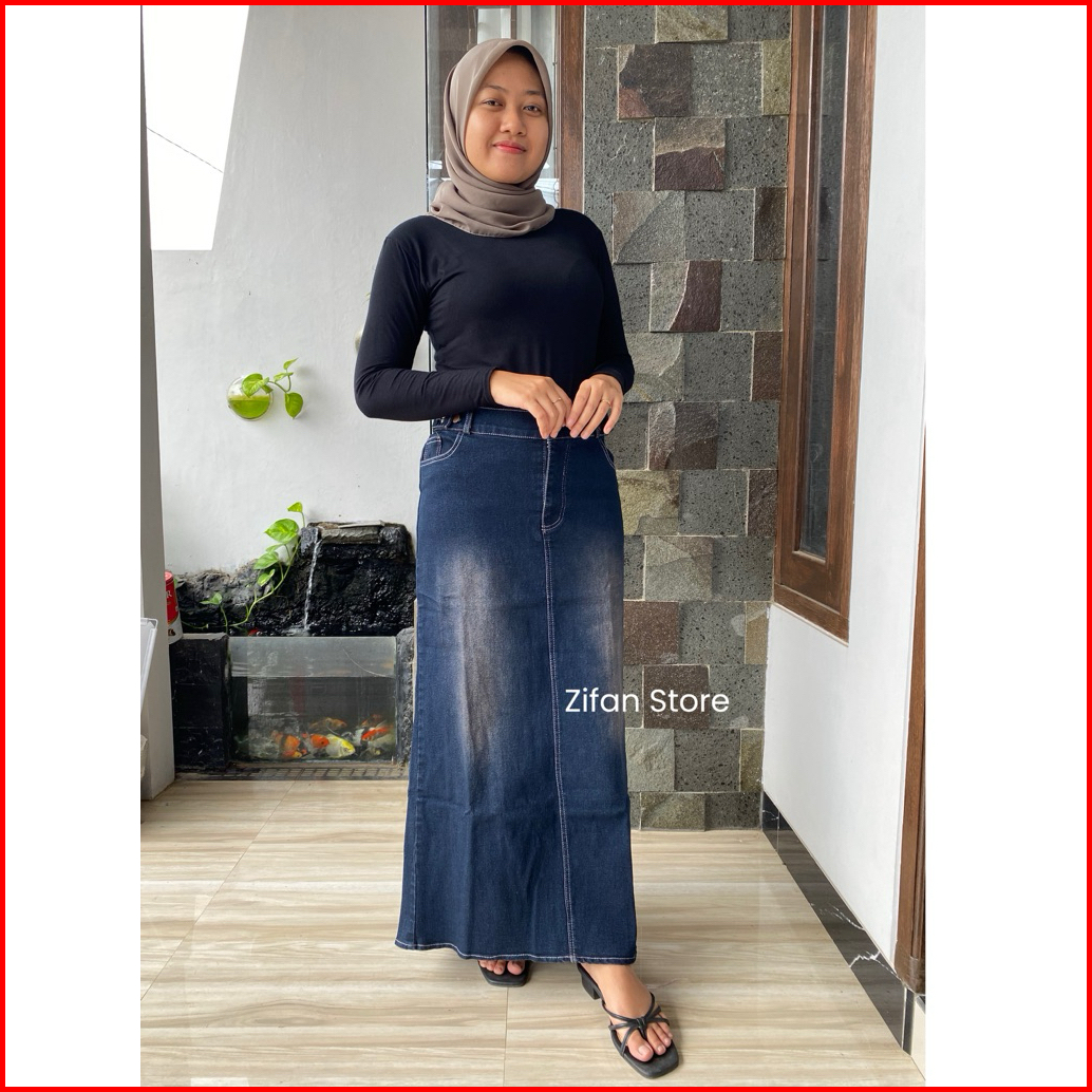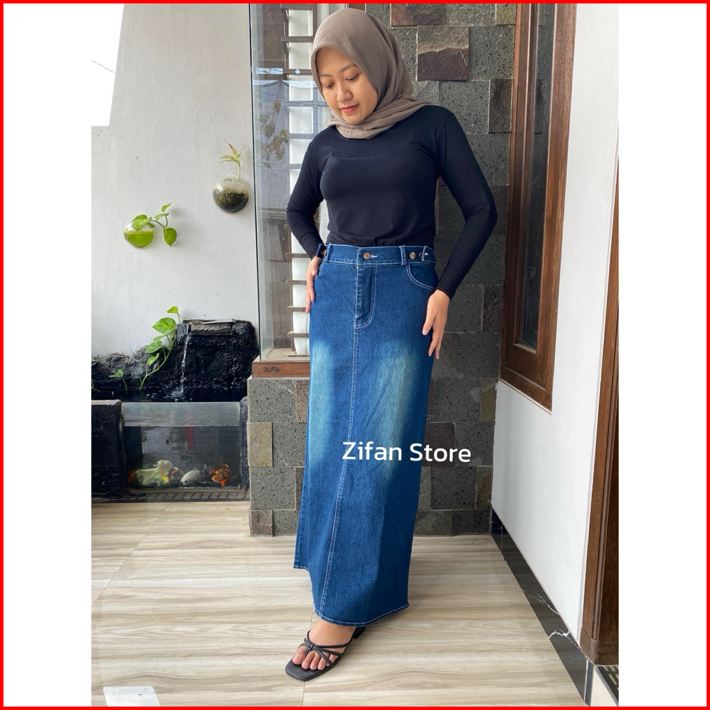 Rok Jeans Panjang Premium Zifa Super Tebal Dan Strecth