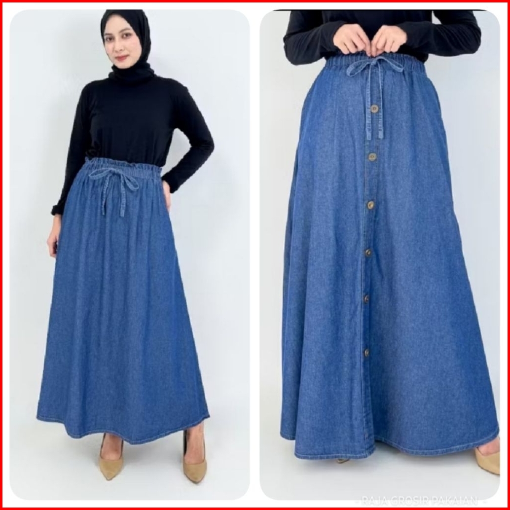 Rok A Panjang Soft Jeans Premium Hight Quality Tidak Kaku Dan Tidak Luntur