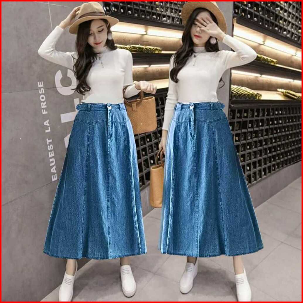 Libby Denim Skirt Rok Panjang Wanita Rok Jeans Korean Jeans Skirt