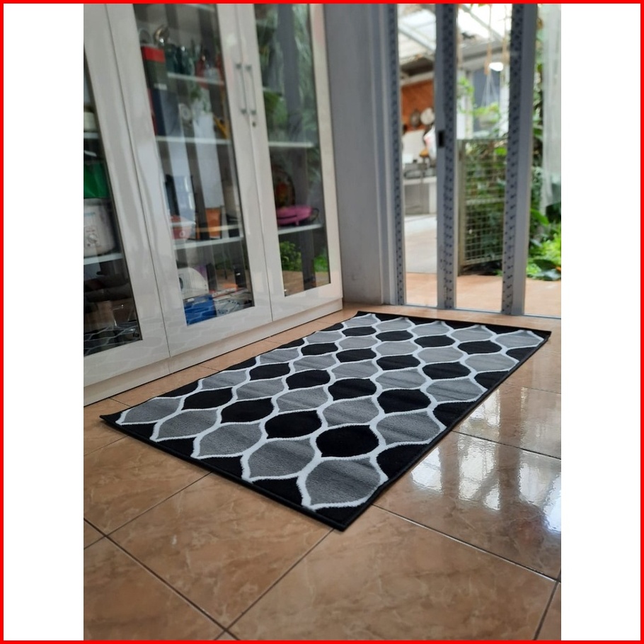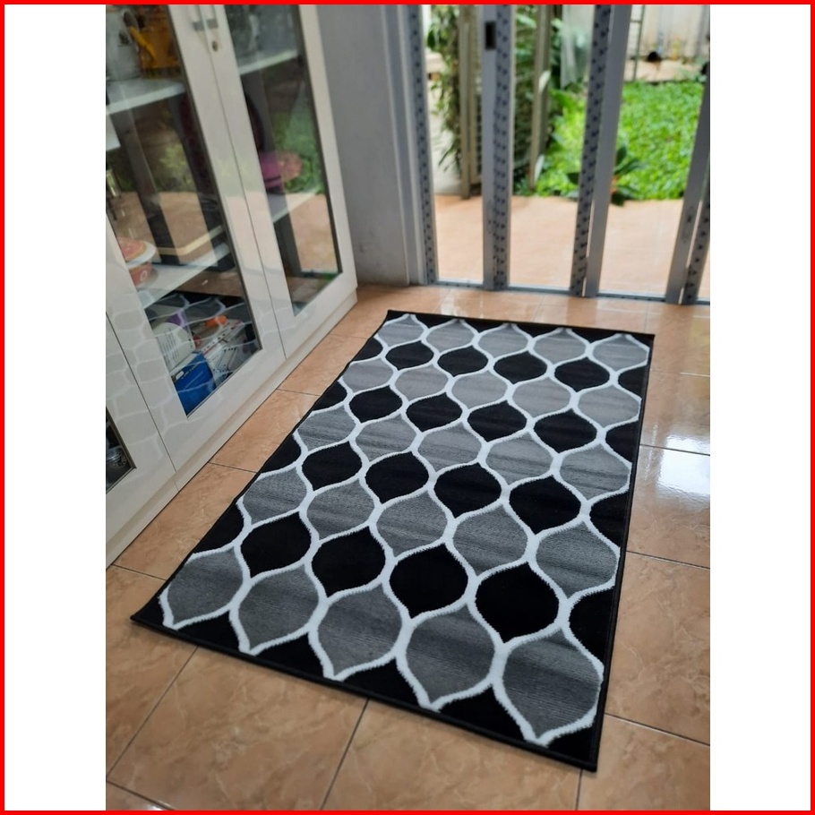 Maroc Karpet Lantai 100x150 Black On Grey Bog09 Karpet Permadani Bulu Tebal