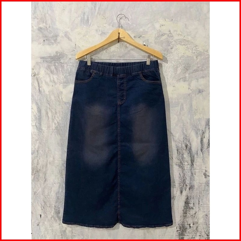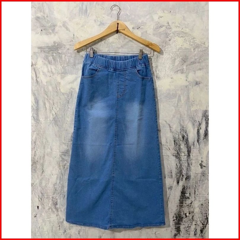 Rok Panjang Jeans Highwaist Bigsize - Rok Panjang Jeans Wanita Full Pinggang Karet Size 28 - 42