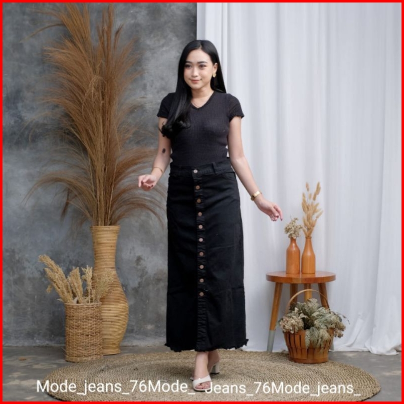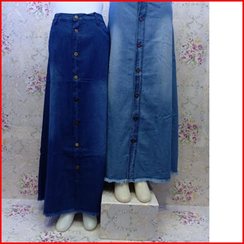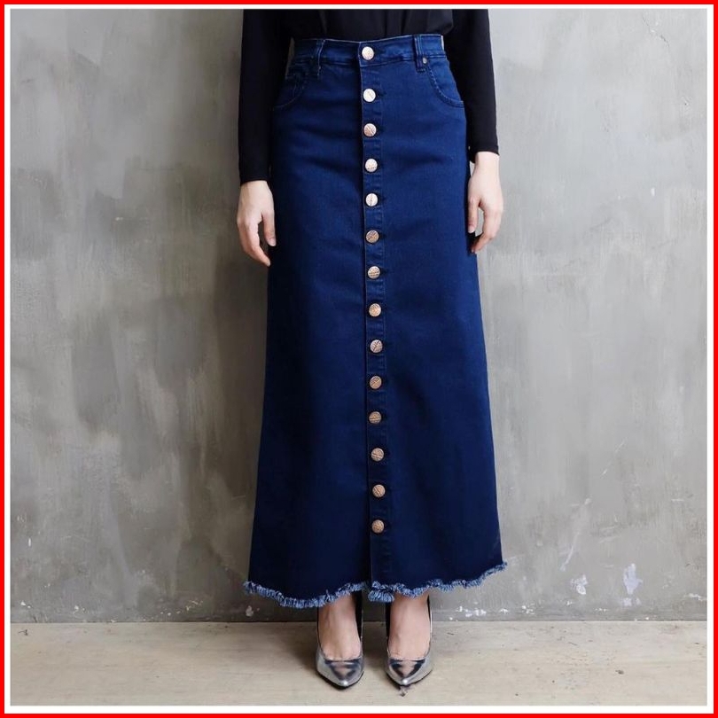 Terbaru Rok Jeans Panjang Kancing Depan Hidup Rok Jeans Wanita Kancing Premium