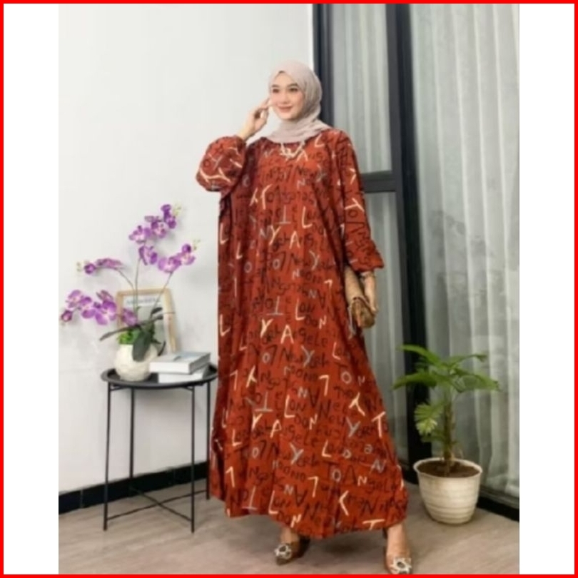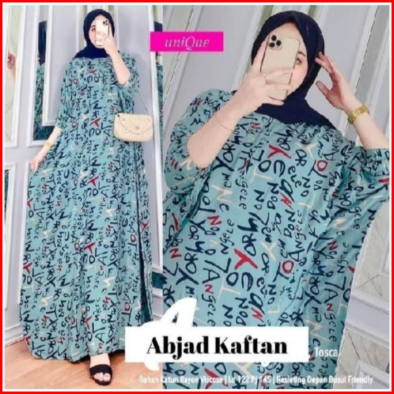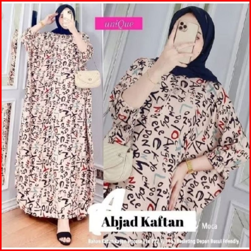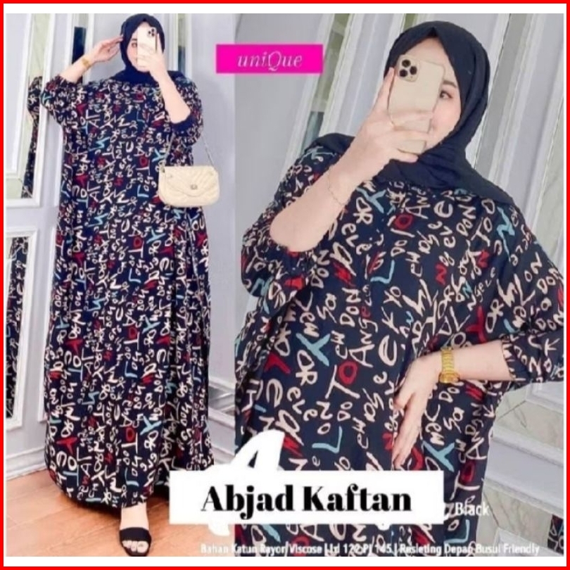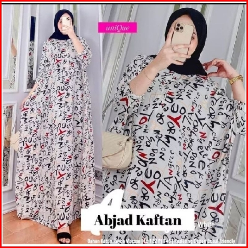 Gamis Kaftan Rayon Jumbo Motif Abjad Muslimah Ld 170cm Daster Lowo Termurah