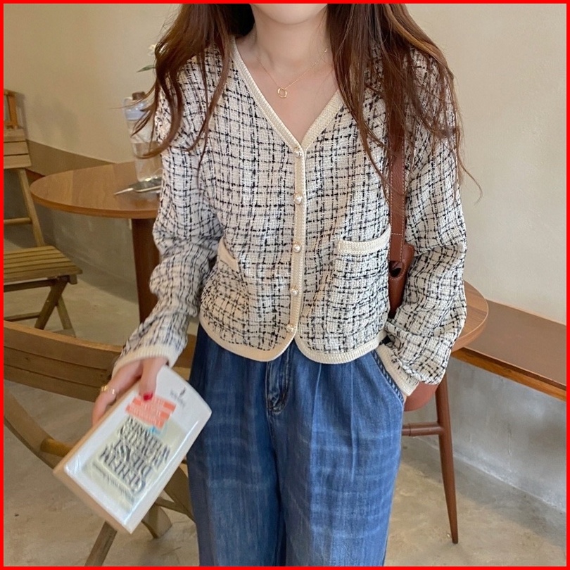 Cardigan Wanita Lengan Panjang Rajut Wanita Kemeja Import Retro Outer Wanita Kekinian Korean Style Jaket Wanita V-neck L