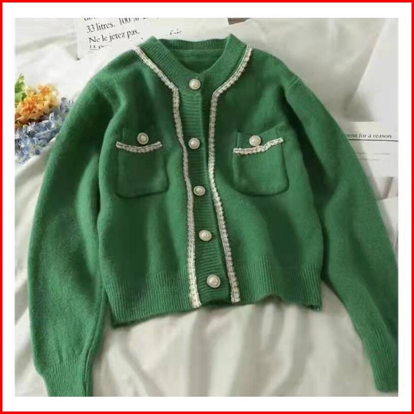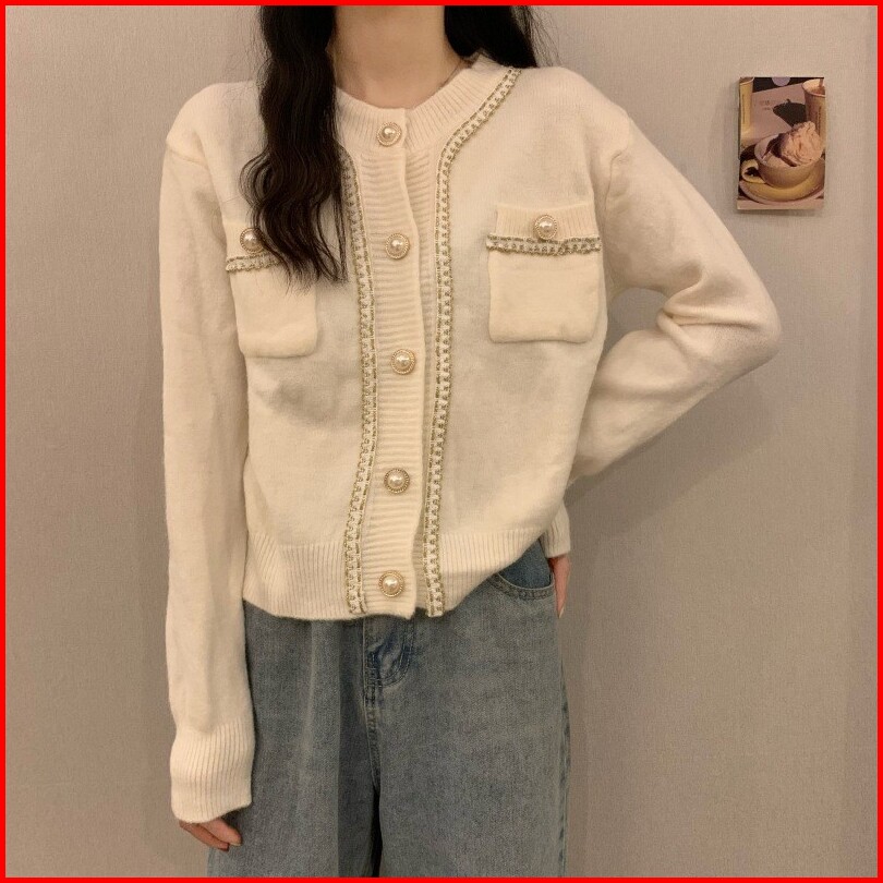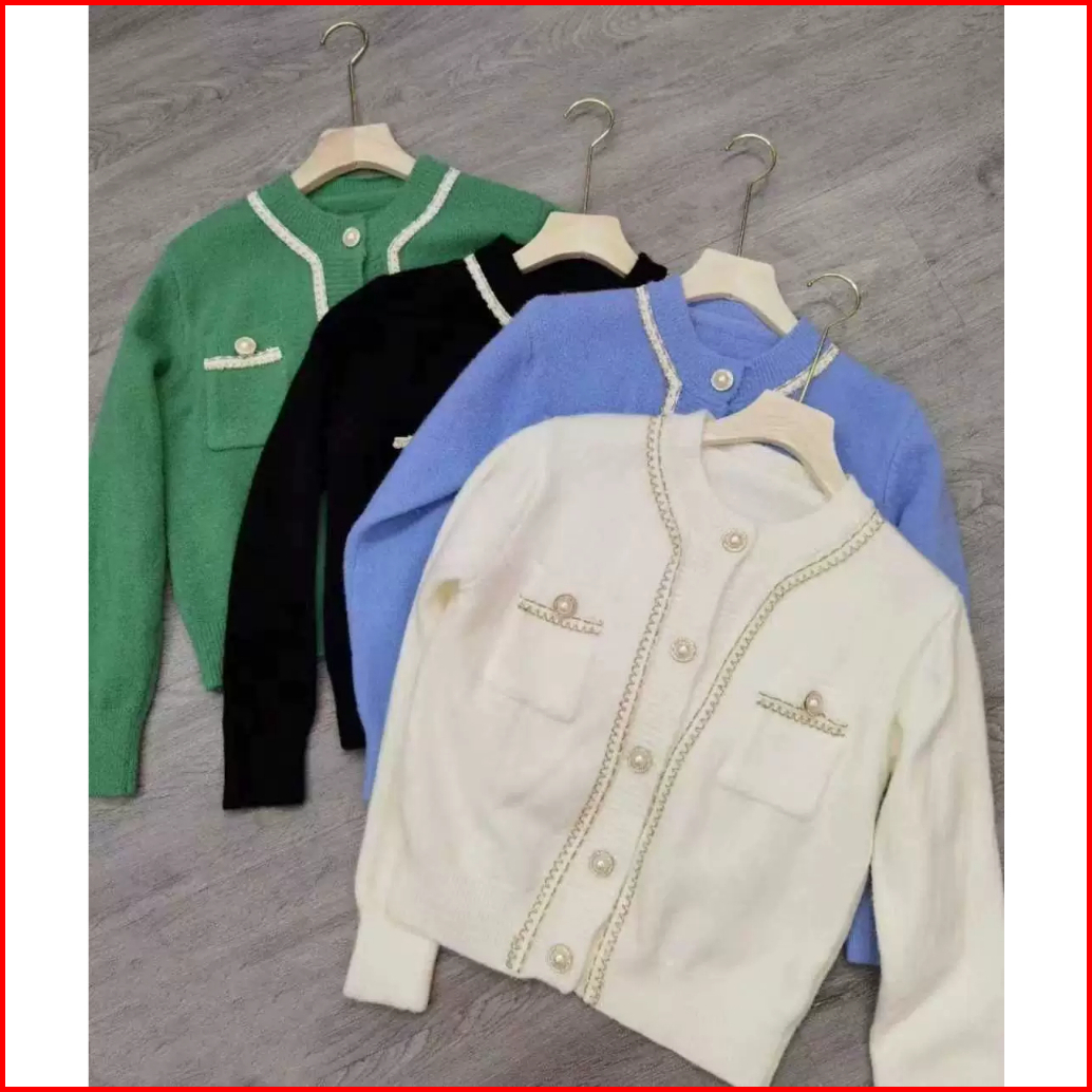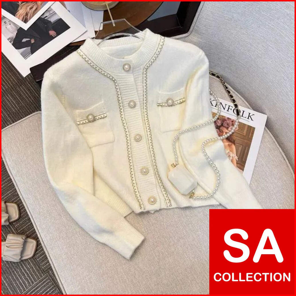 Sac - Kn101 Cardigan Wol Rajut Korean Style Lis Full Mutiara