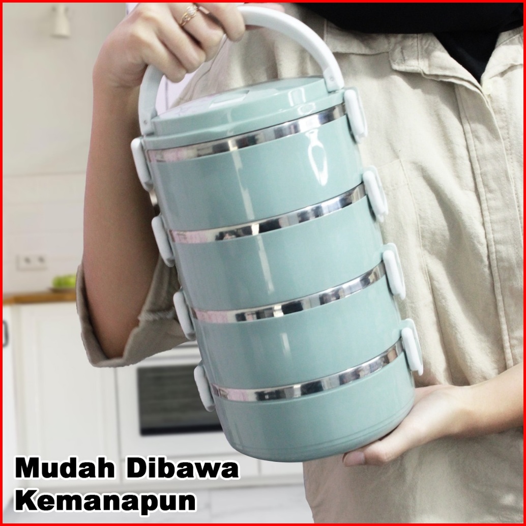 Rantang Stainless Steel 4 In 1 Kotak Bekal Makan Susun Anti Tumpah Terbaru Fh-15