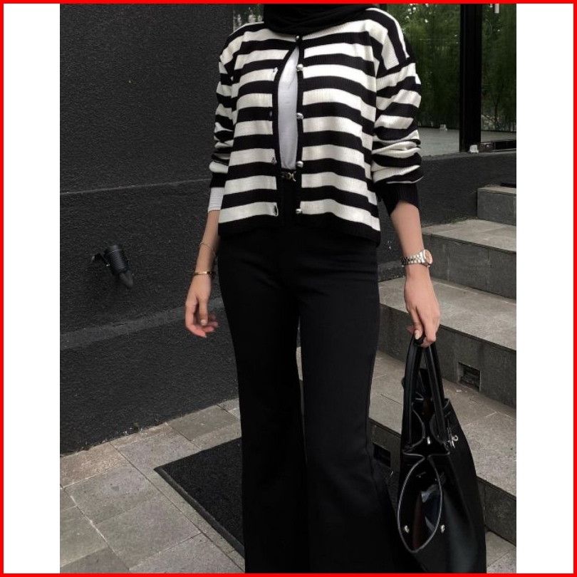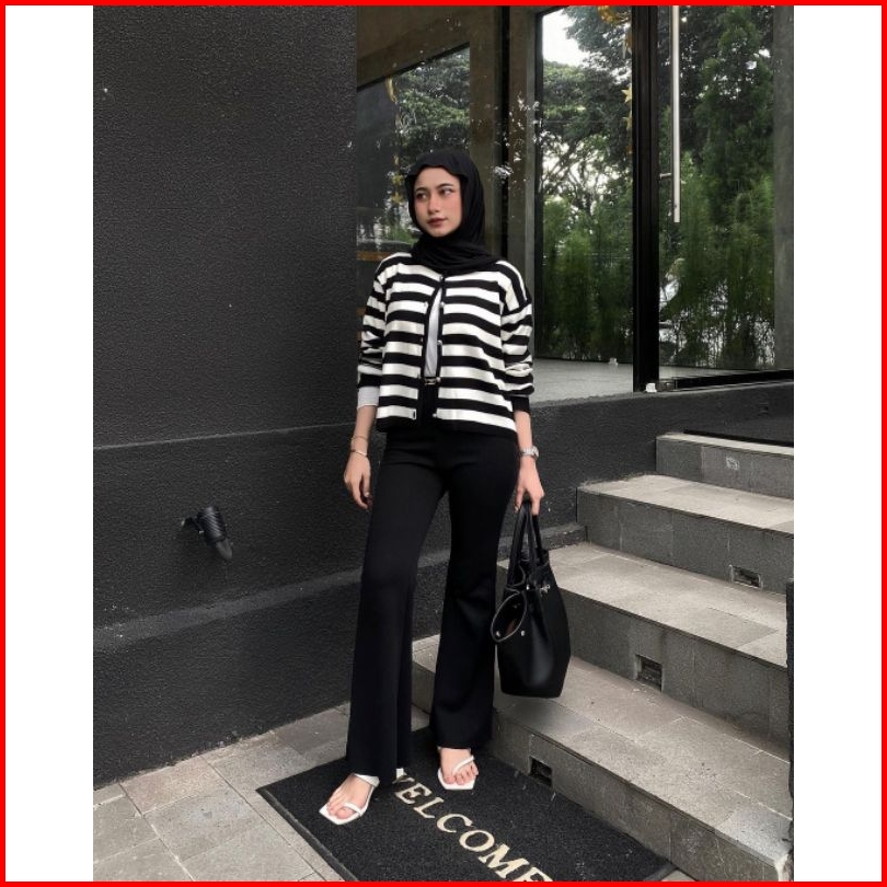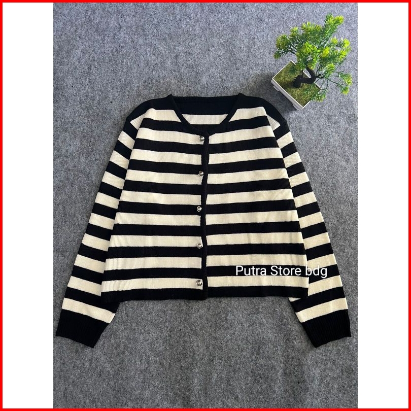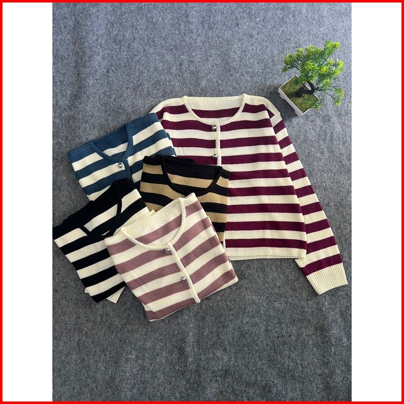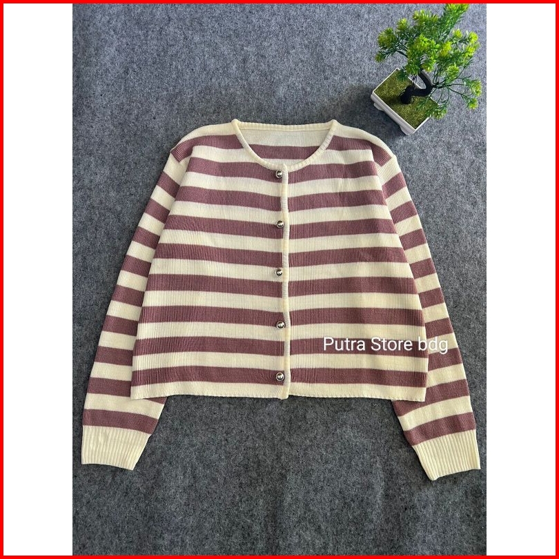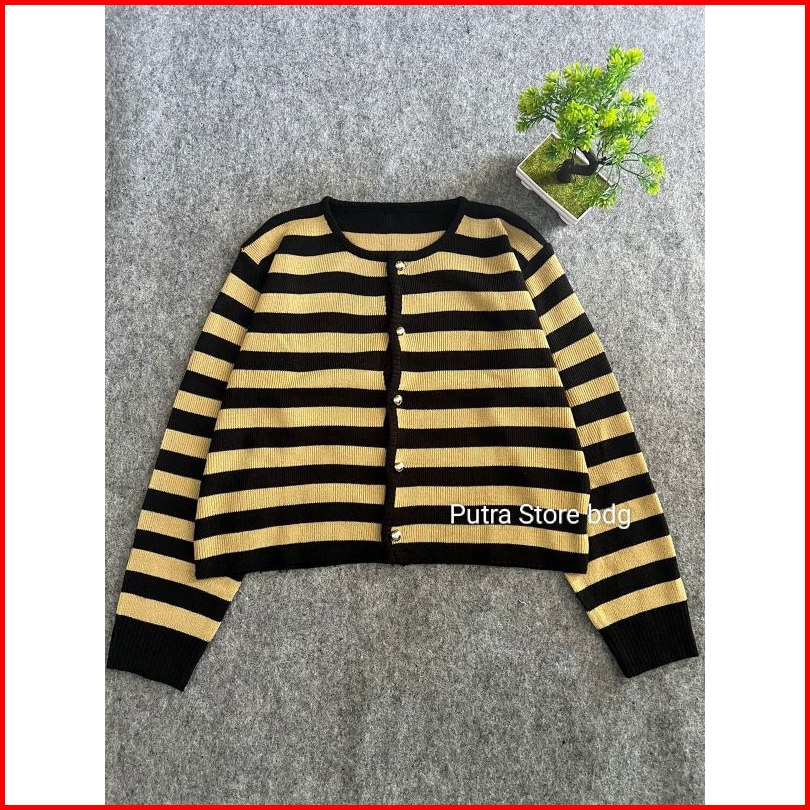 Calya Outer Cardi Crop Stripe Atasan Rajut Wanita