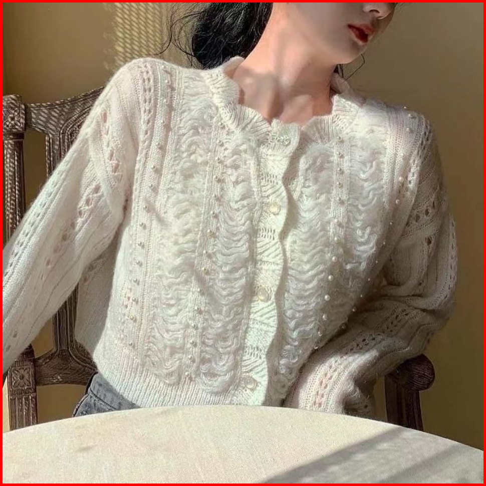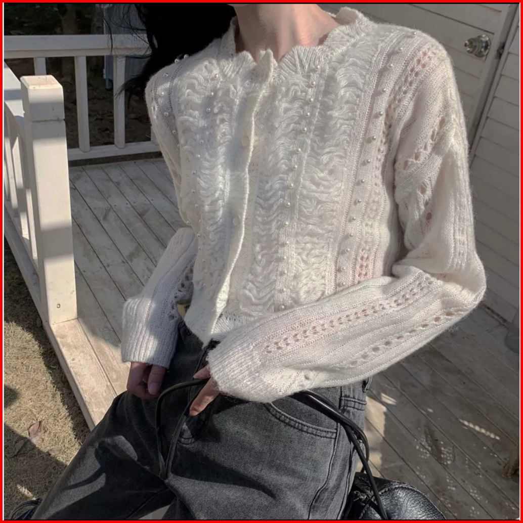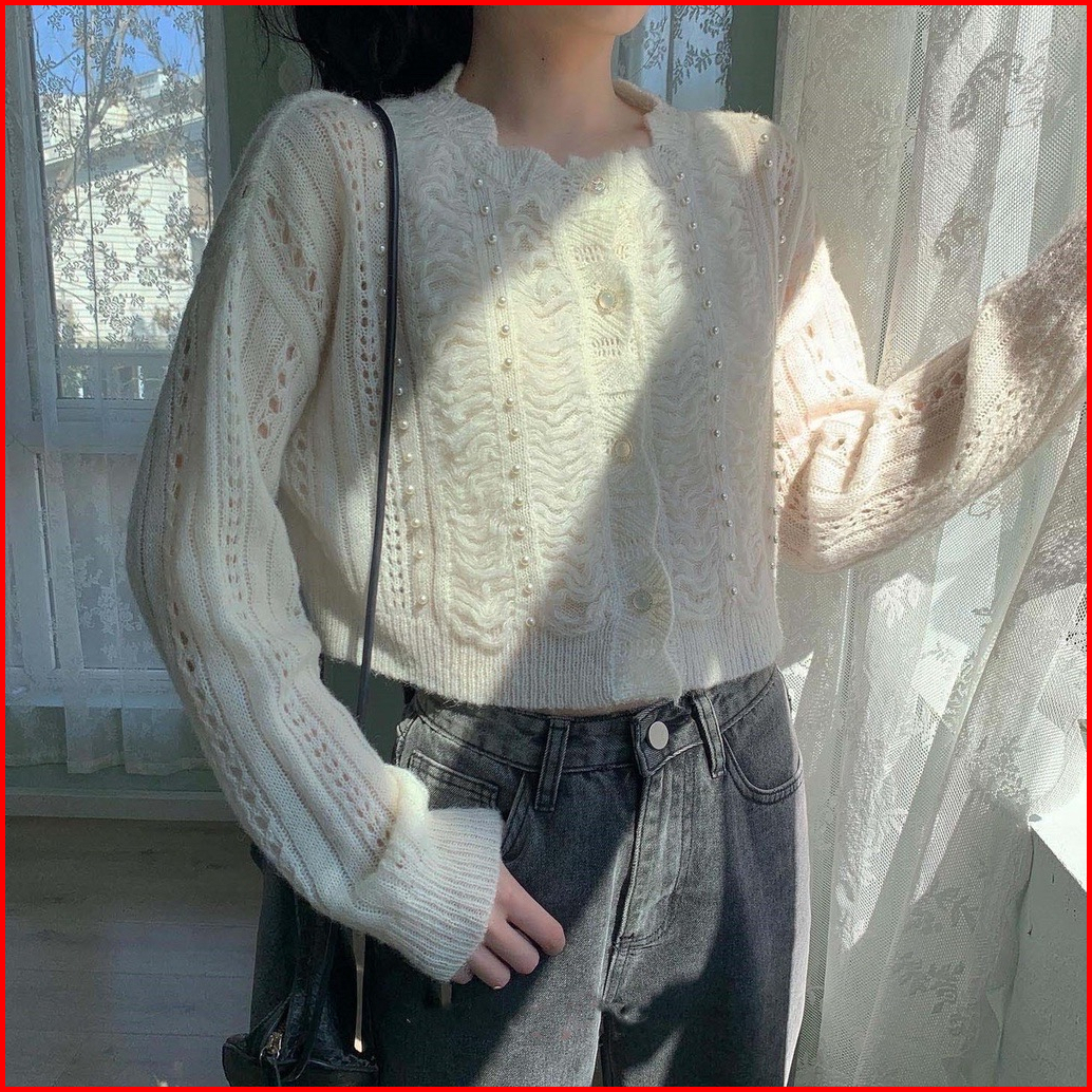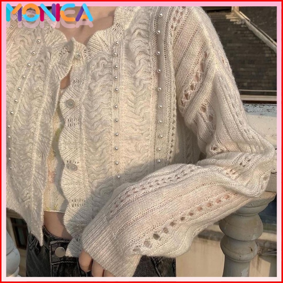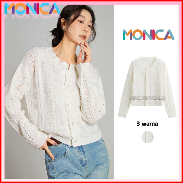 Monica Cardigan Crop Manis Berongga Cardigan Cute Cardigan Coquette Cardigan Korean Style Putih