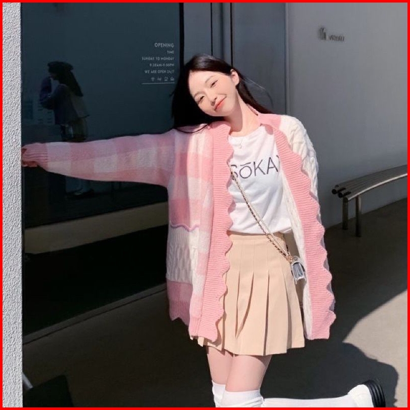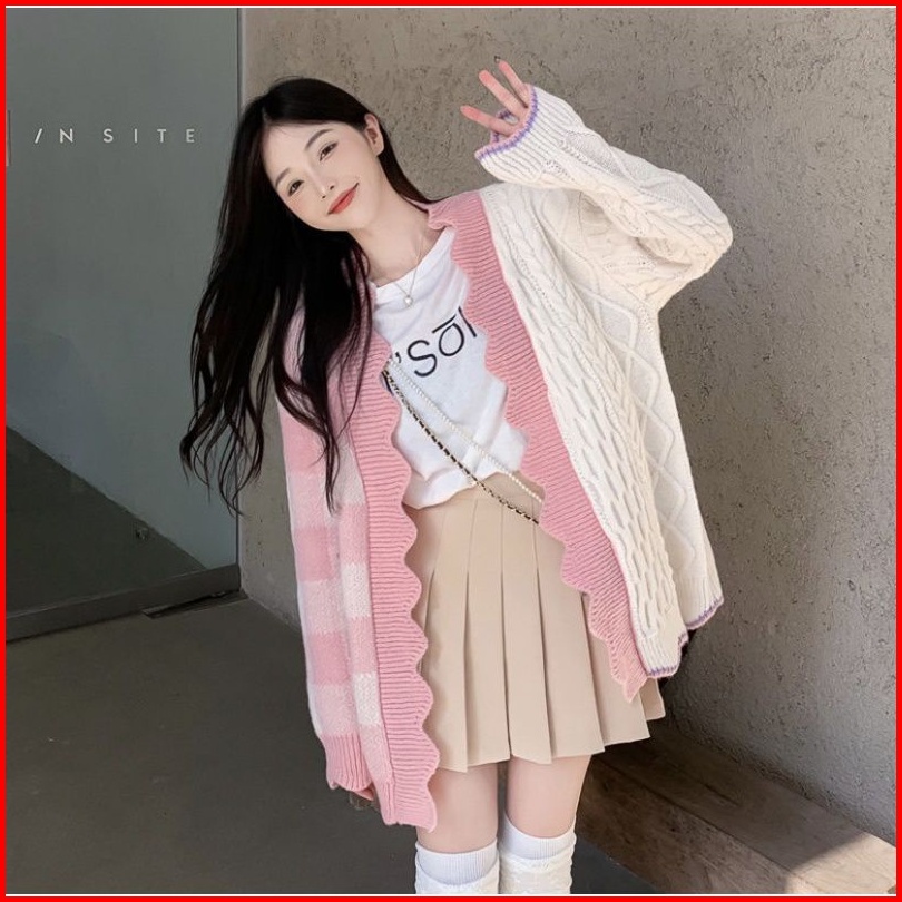 Tessa Knit Kardigan Cable Combine Cardy Style Korea