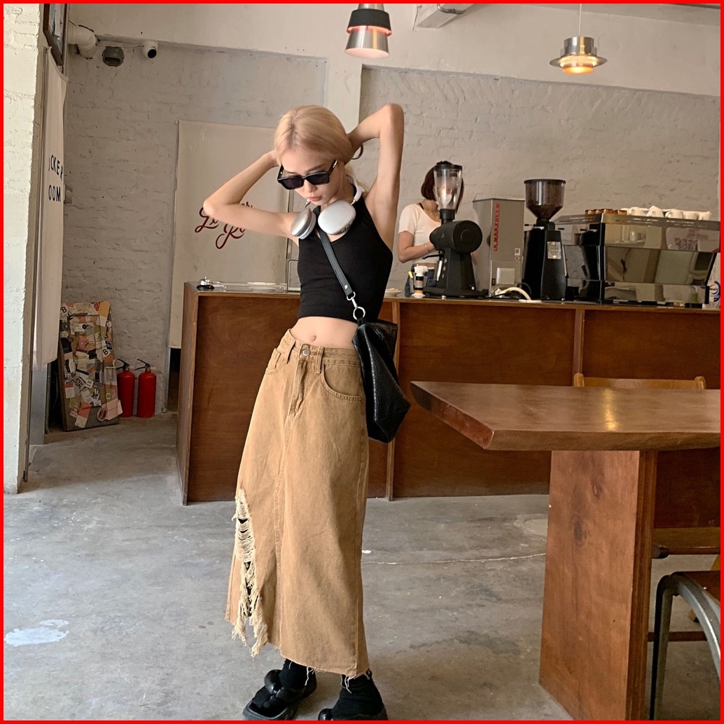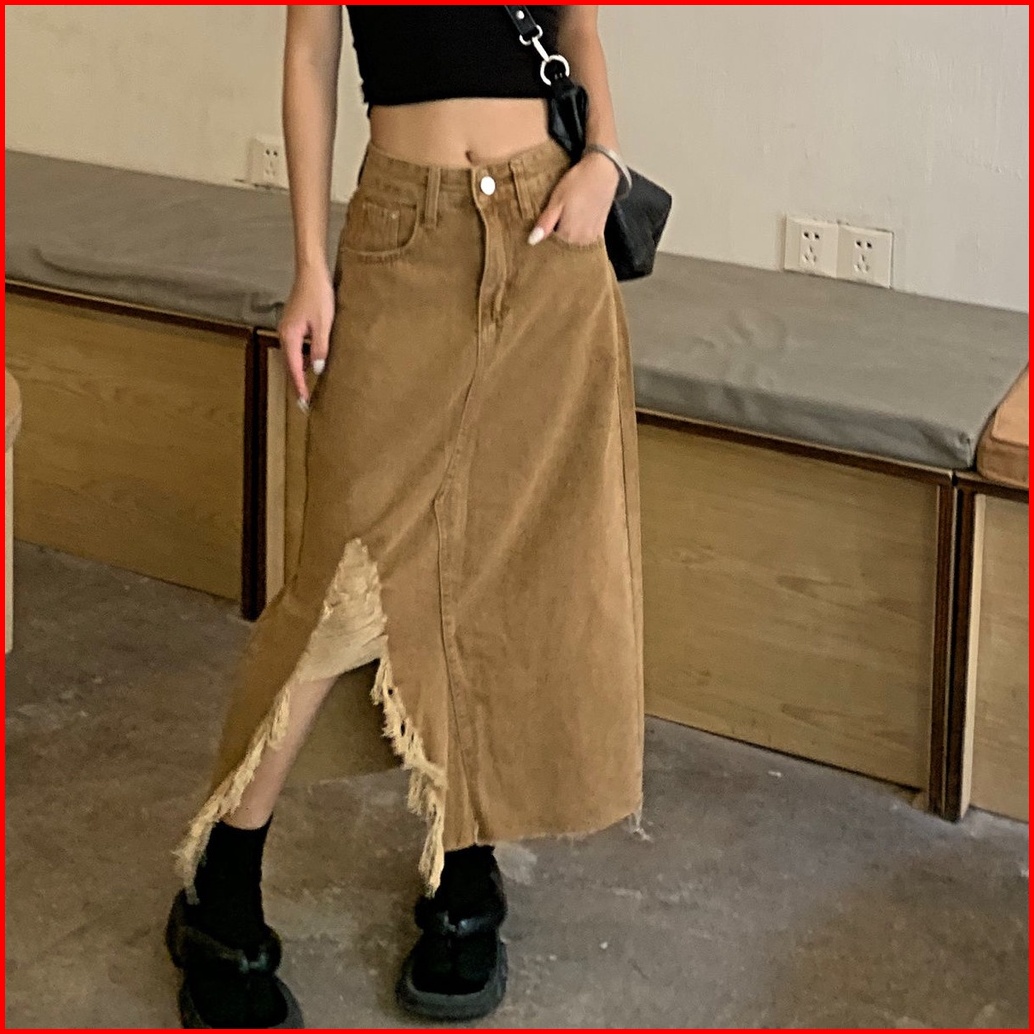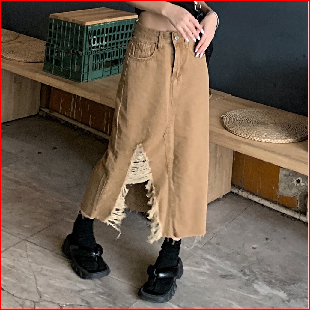 Rok Jeans Model Jepang Dengan Celah Dan Potongan Pinggul