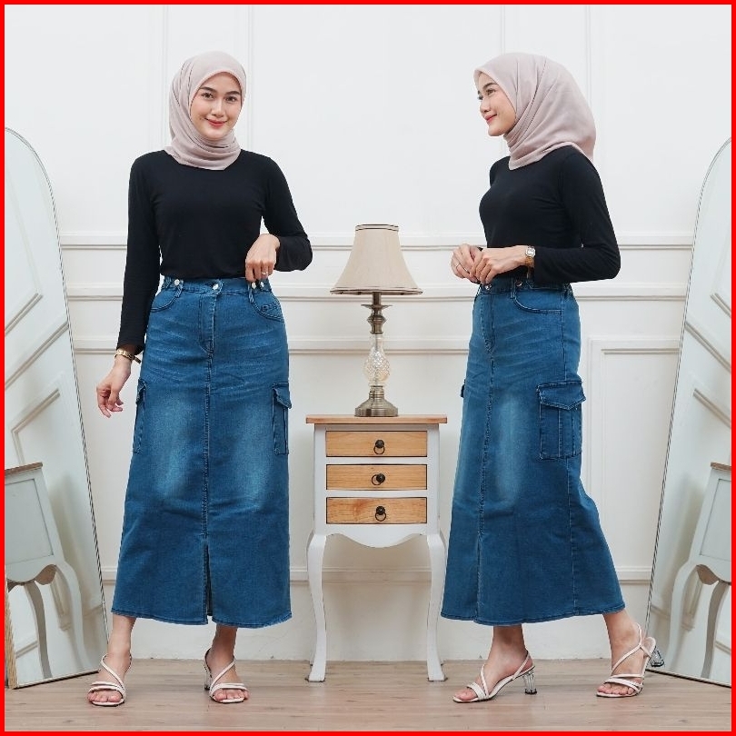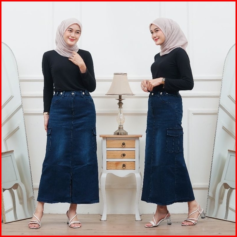 Rok Jeans Button Snow Black Dan Snow Blue Jeans Rok Kancing Rawis