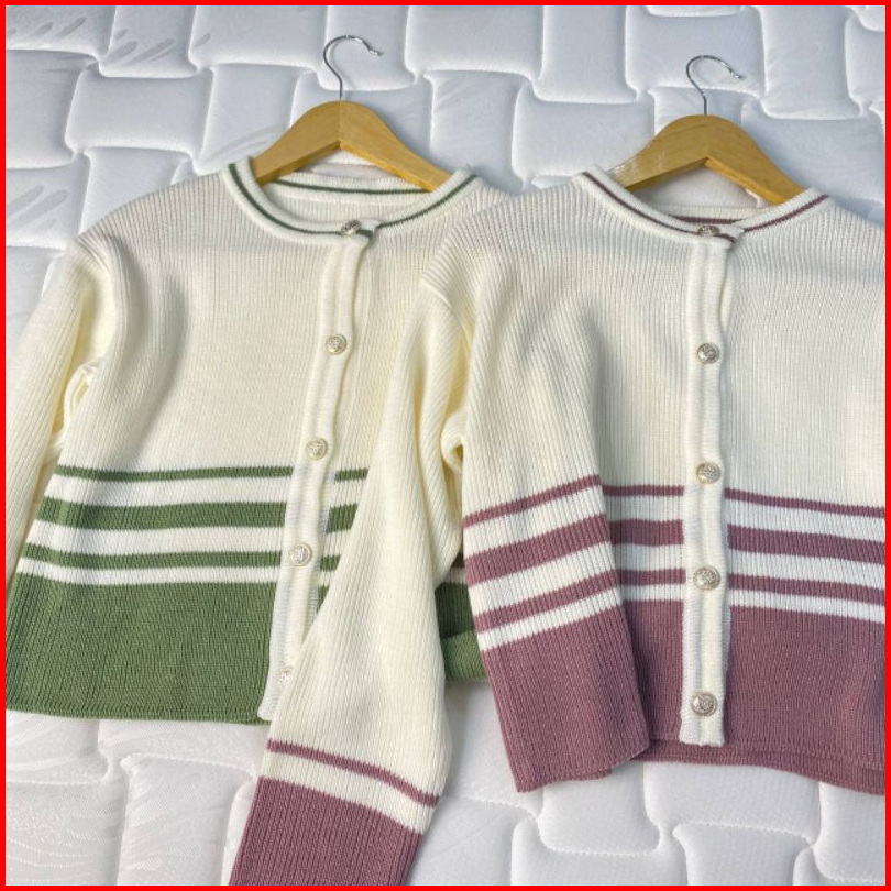 Cardigan Wanita Kancing Zuma - Casual Atasan Wanita Premium Striped Daily Outfit