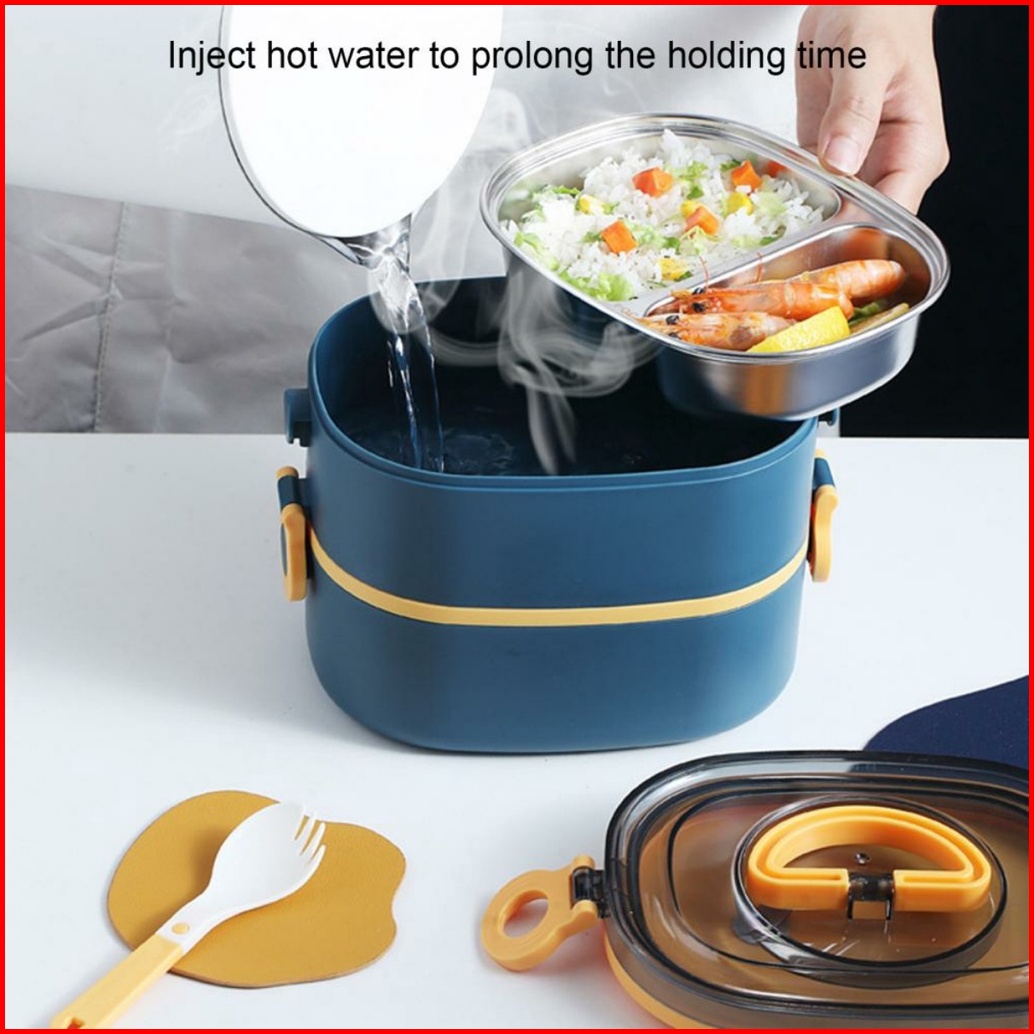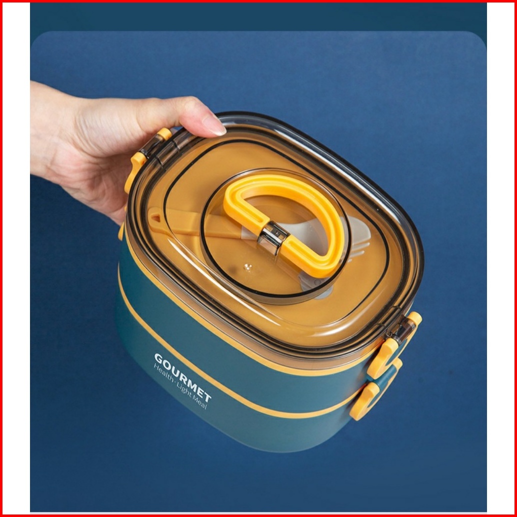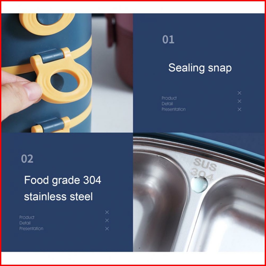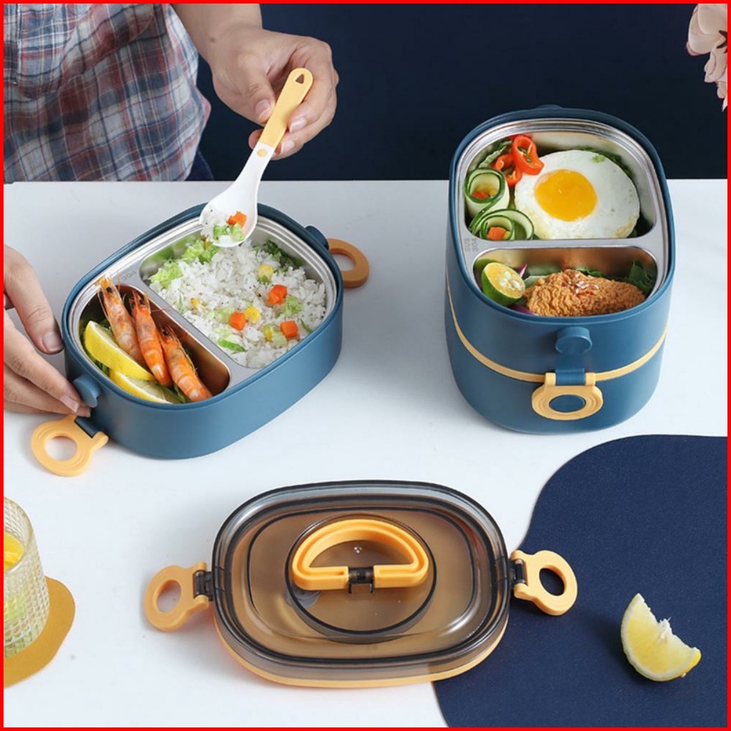Kotak Bekal Makan 2 Susun Model Bundar Stainless Dilengkapi 1 Sendok Lunch Box Stainless Food Grade