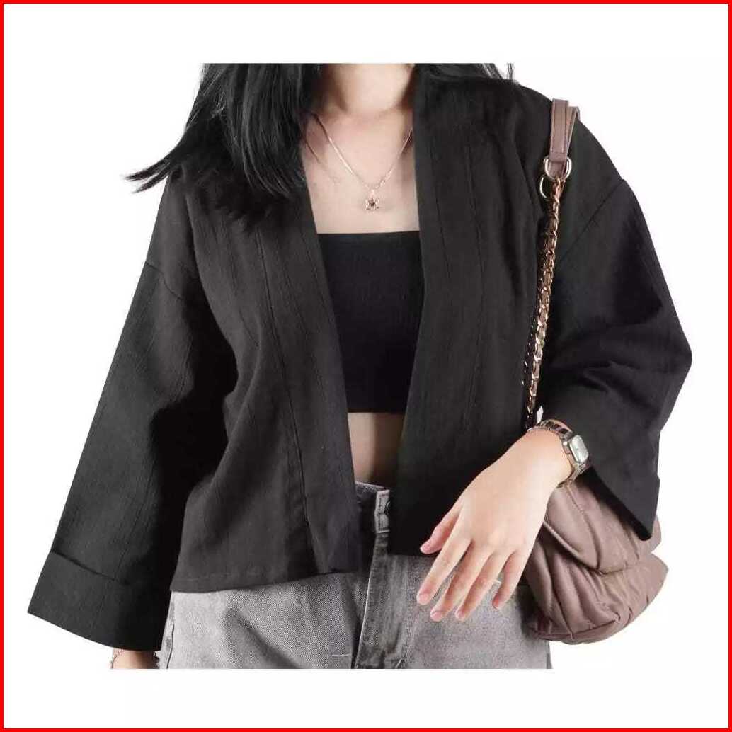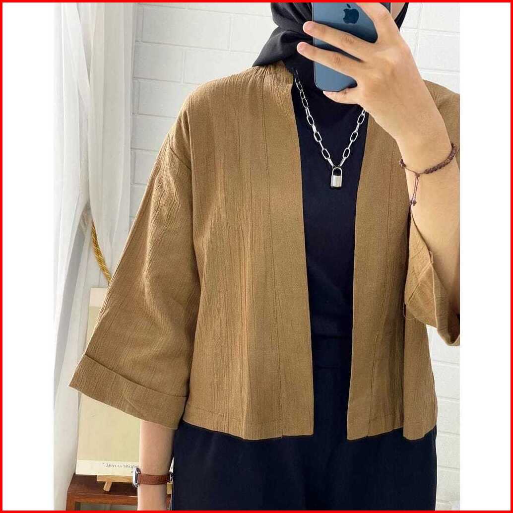 Belia Outer Wanita Crop Lengan 3 4 Outer Kiyowo Cardi Crop Linen Crinkle