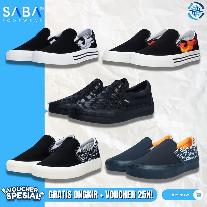 [Star] Sepatu Slip On Pria Wanita SABA Unisex Casual – Red Flame, White Flame, Paisley, Checkerboard Size 36-45