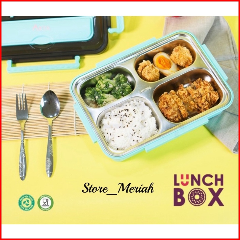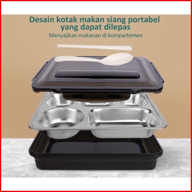 S M Lunch Box Tempat Makan Kotak Bekal Stainles Stel Sekat 4