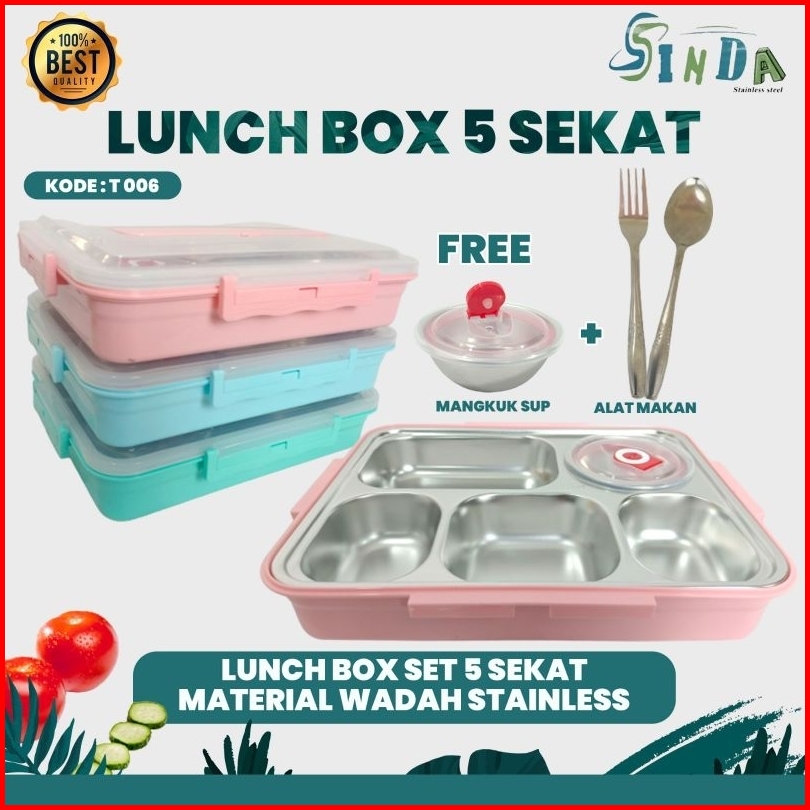 Lunch Box Kotak Bekal Makanan 5 Sekat Stainless Tahan Panas