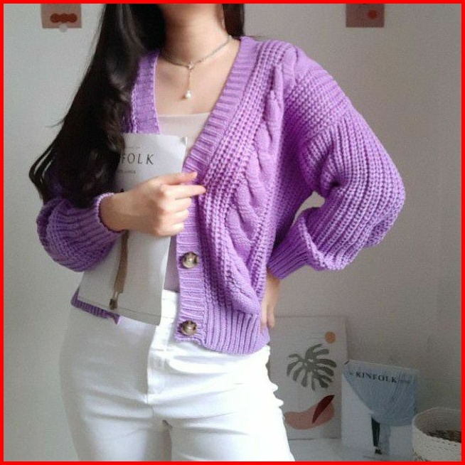 Crop Cable Cardy 7get Tebal Cardigan Rajut Oversize Kardigan Rajut Wanita Terbaru