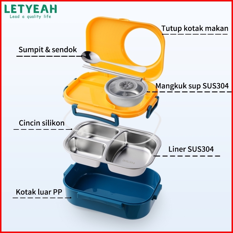 Aveline Lunch Box Kotak Makan 3 Sekat 4 Sekat 5 Sekat Sus 304 Stainless Steel Lunch Box Stainless Tahan Panas Dan Anti T