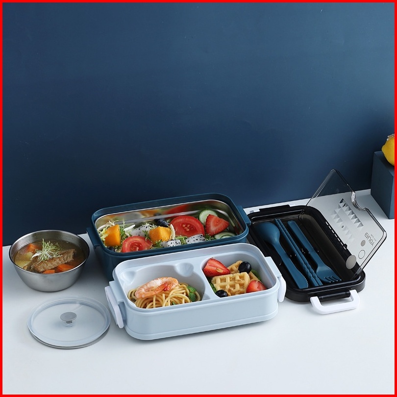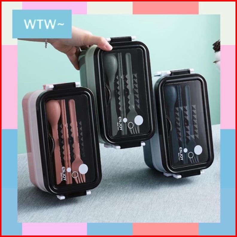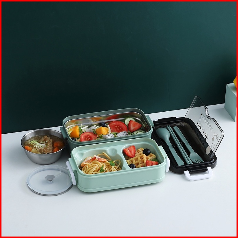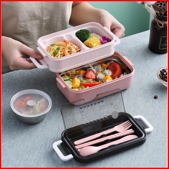 Kotak Makan Double Layer Tempat Bekal Makan 2 Susun Set Sendok Lunch Box Set Bpa Free Bento Box