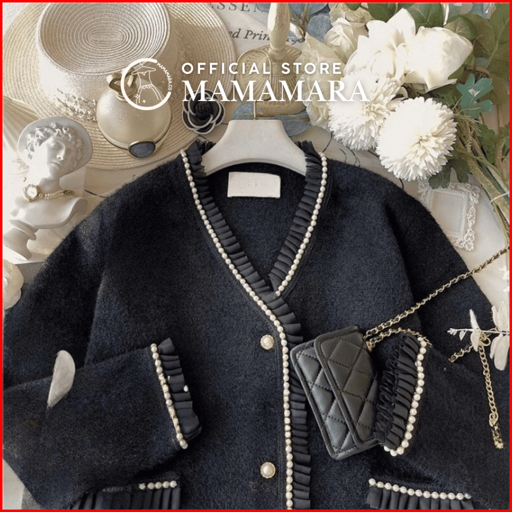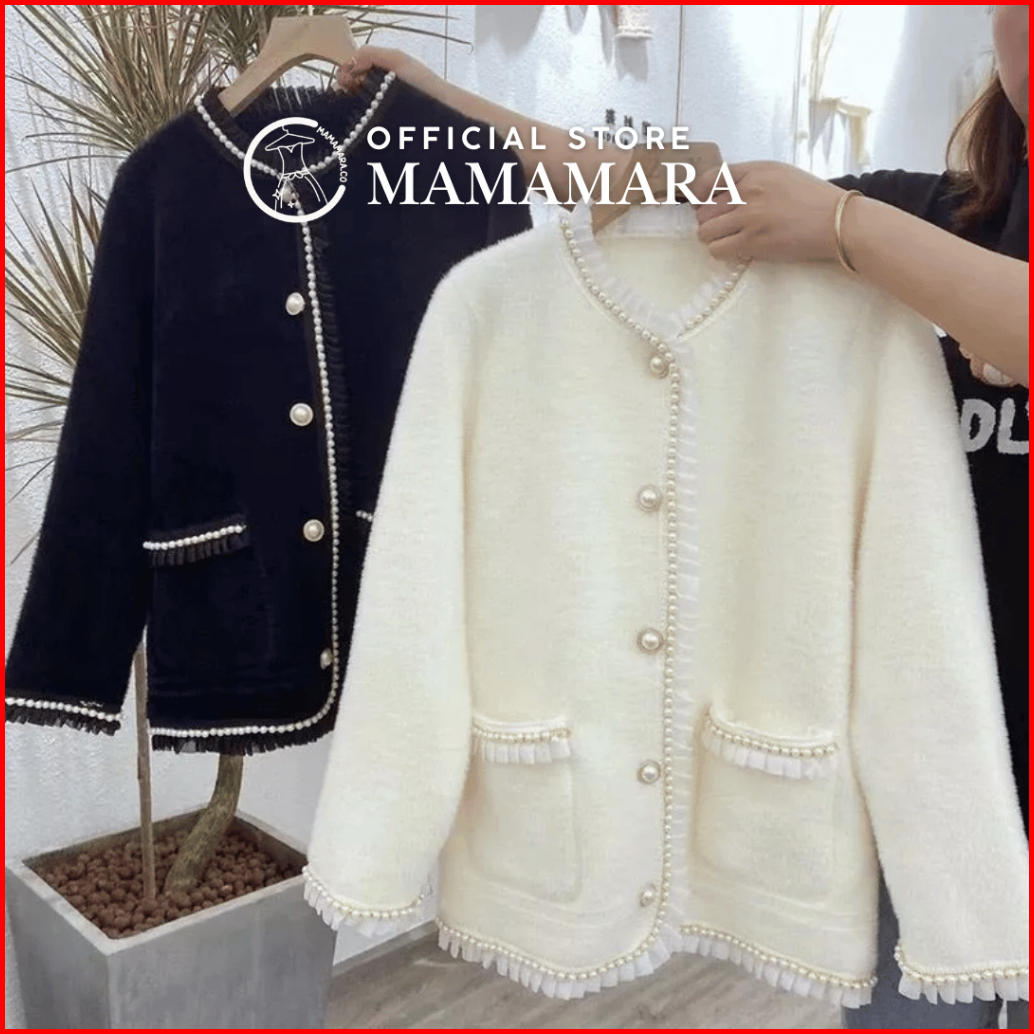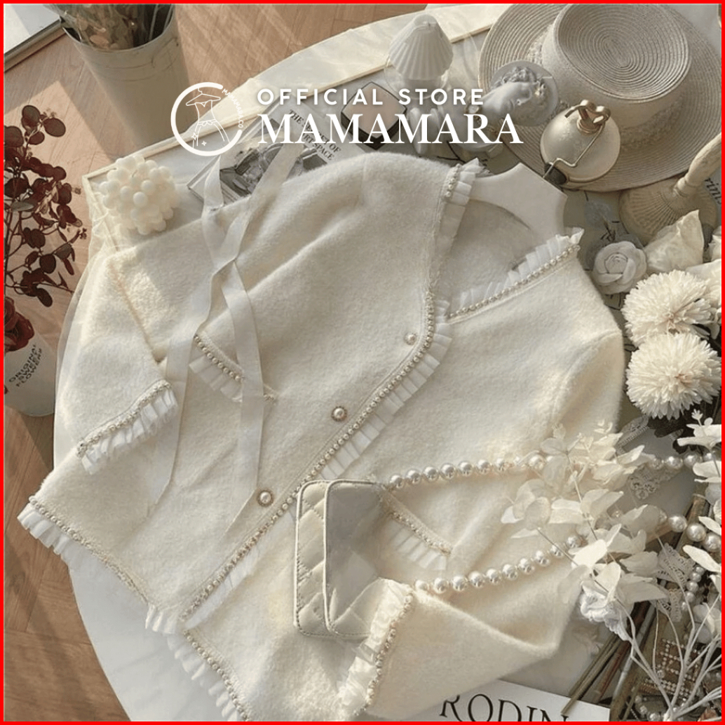 Mamamara - Cardigan Blazer Bulu Halus Tebal Mutiara Sweater Lis Renda