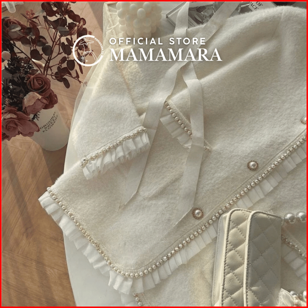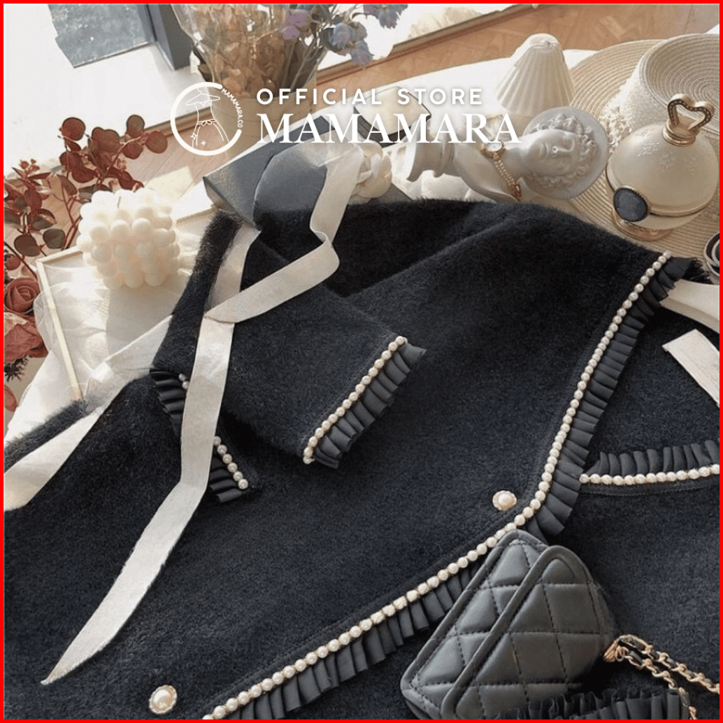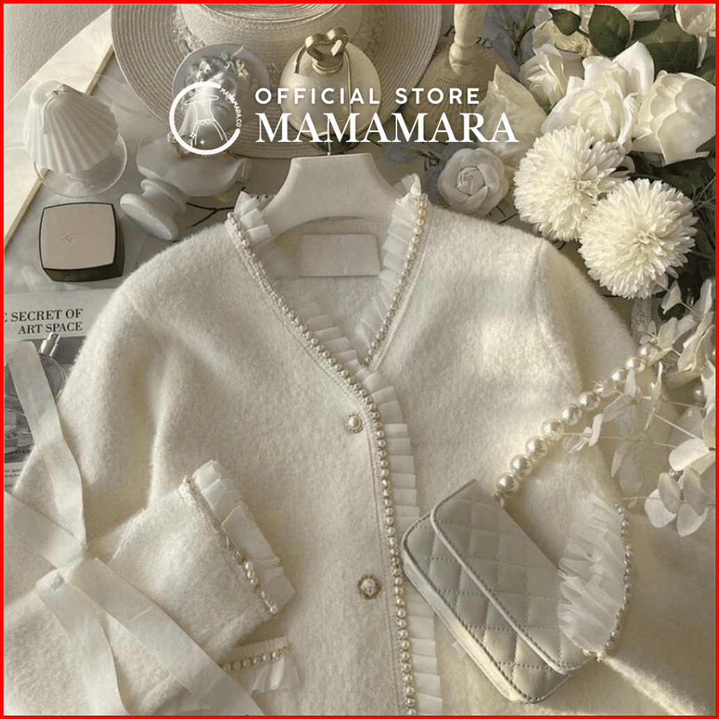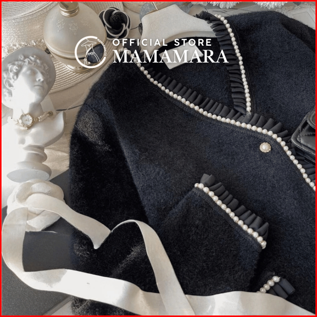 Mamamara - Cardigan Blazer Bulu Halus Tebal Mutiara Sweater Lis Renda