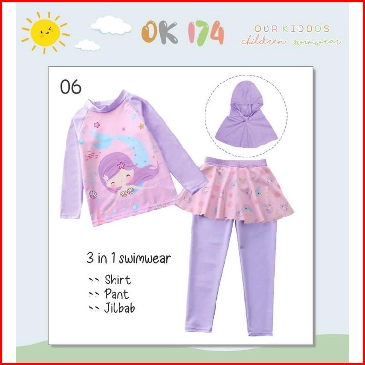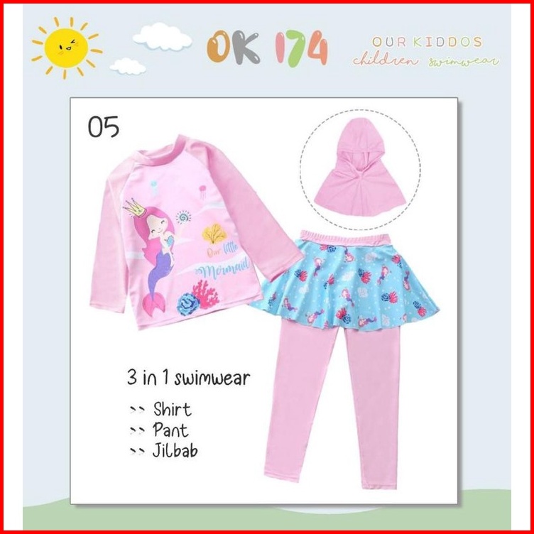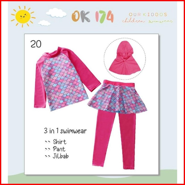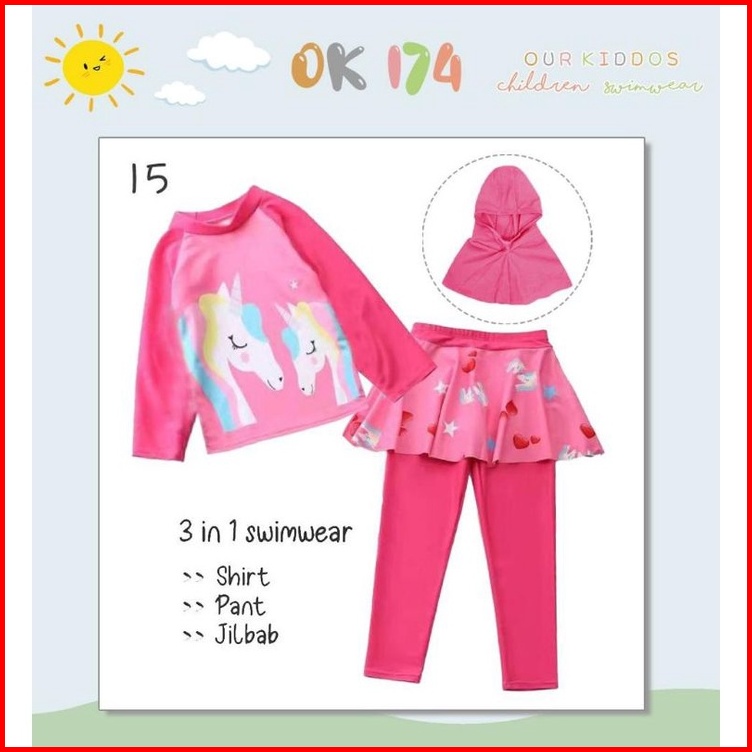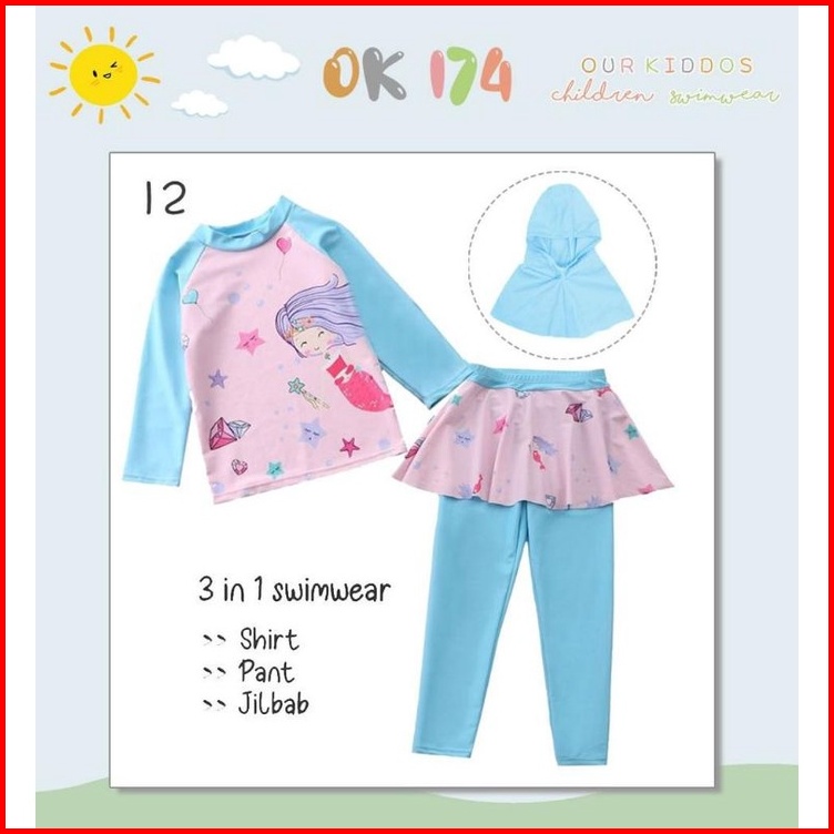 Baju Renang Anak Hijab Ok174 Teen Girl Swimsuit Perempuan Cewek Abg Remaja Tanggung Muslim Sd Smp 8 9 10 11 12 13 Tahun