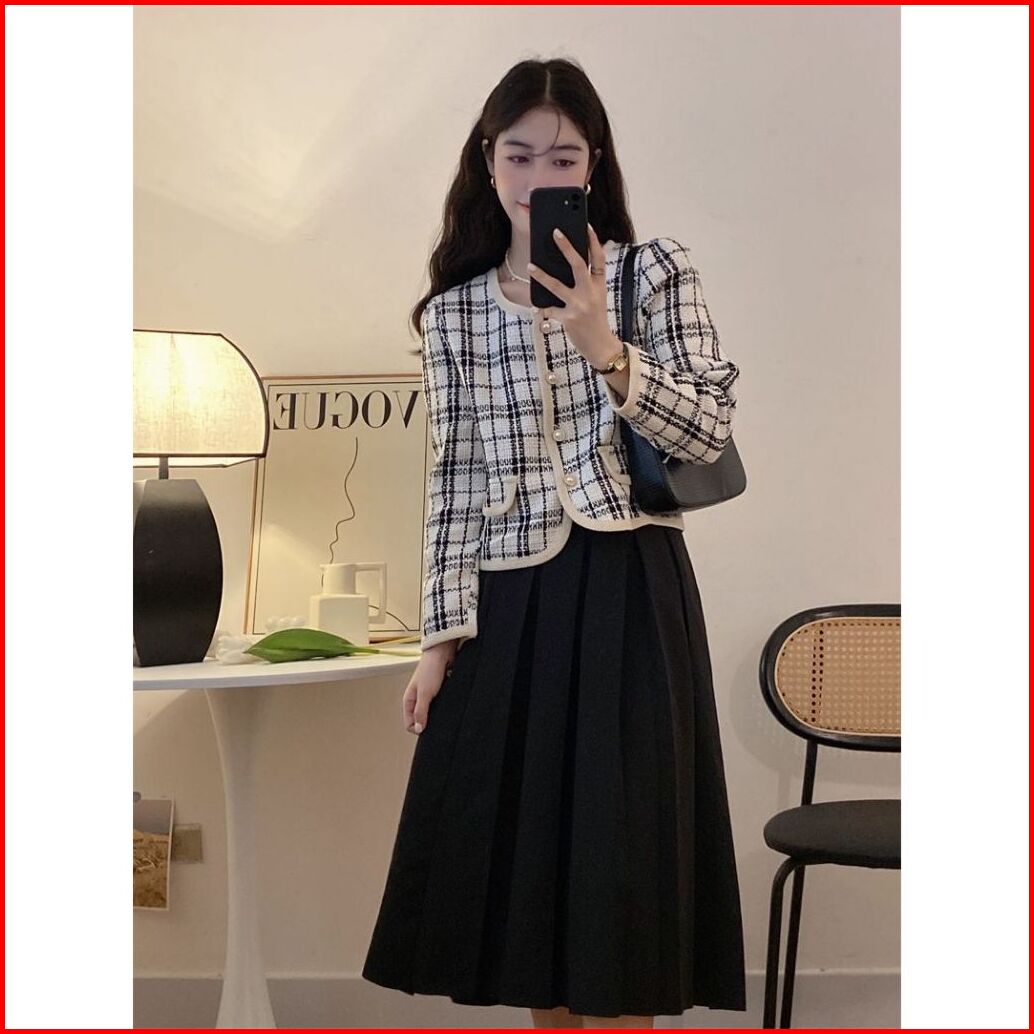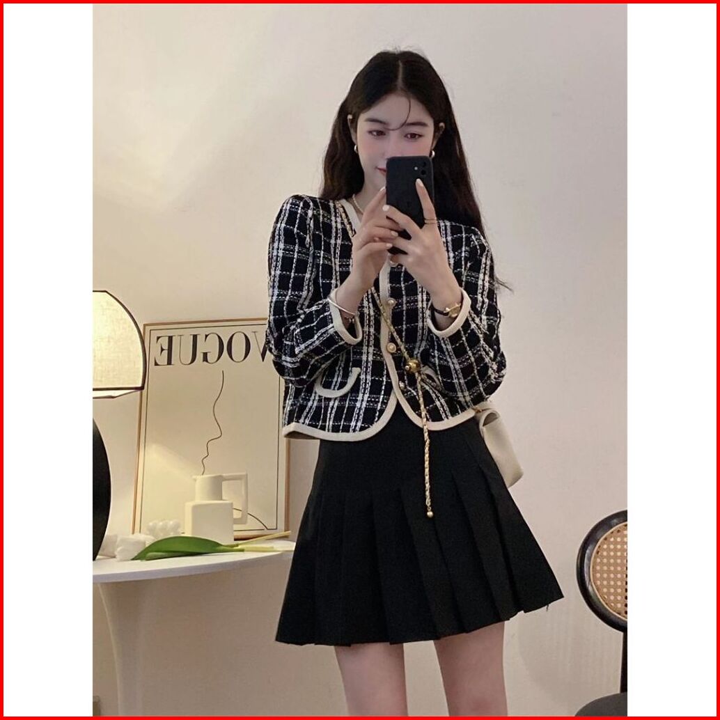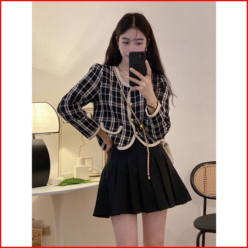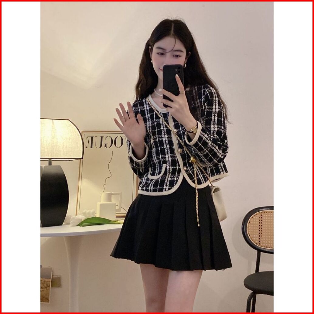 Jaket Kotak-kotak Wanita Gaya Korea Kekinian Import Jaket Kardigan Crop Terbaru Wanita Pendek Lengan Panjang Mutiara Kor