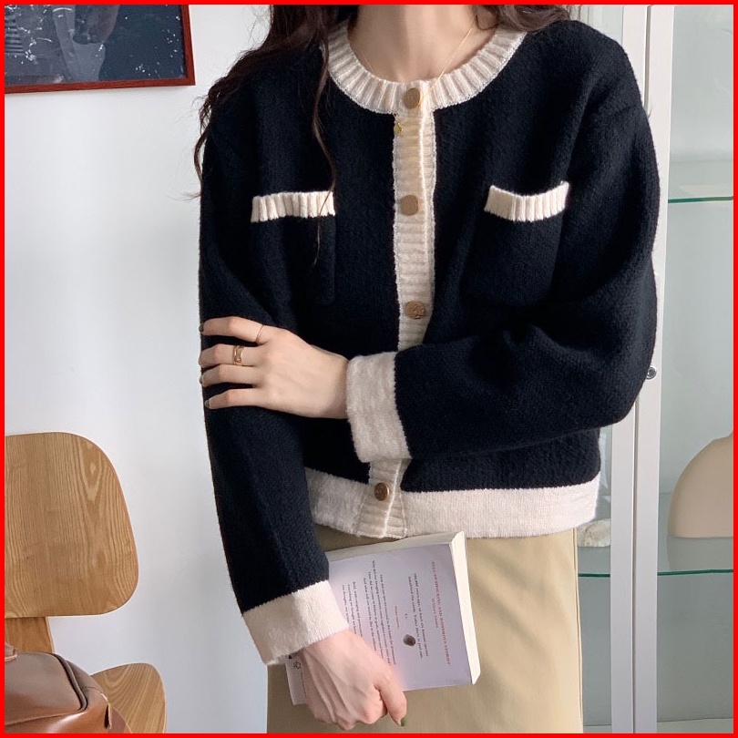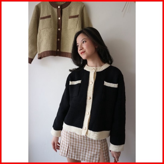 Basic Pocket Cardi Korean Cardigan Sweather Korea Sweater Wanita Bahan Rajut Premium