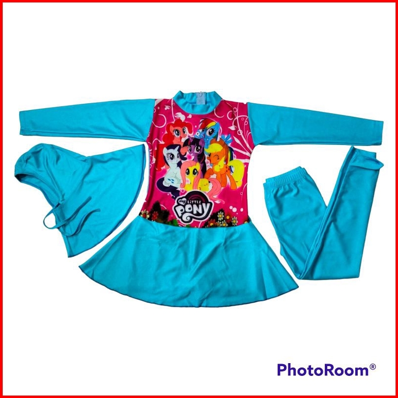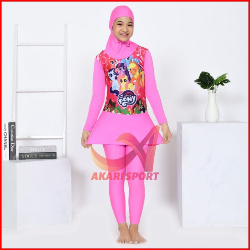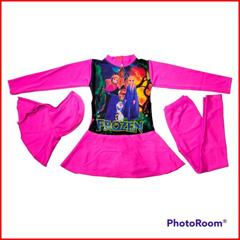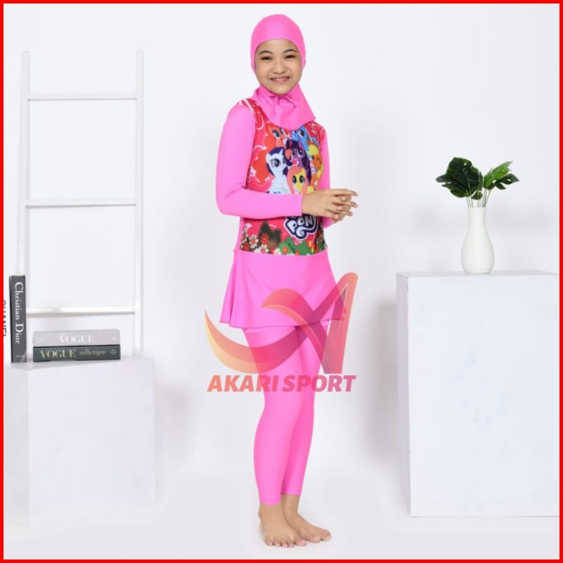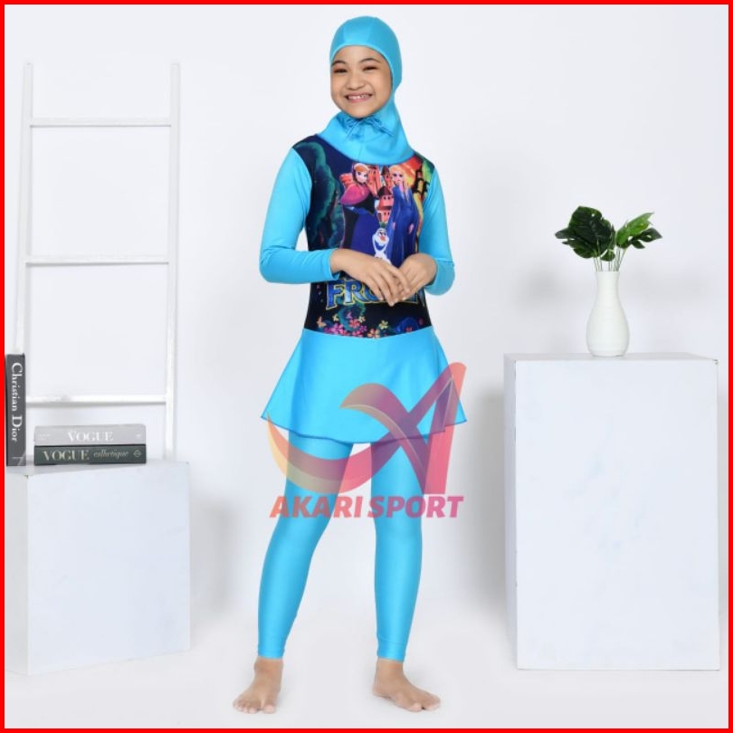 Baju Renang Anak Muslim Tk Sd 3-12tahun Hijab Gambar Spandek Premium