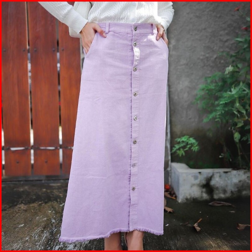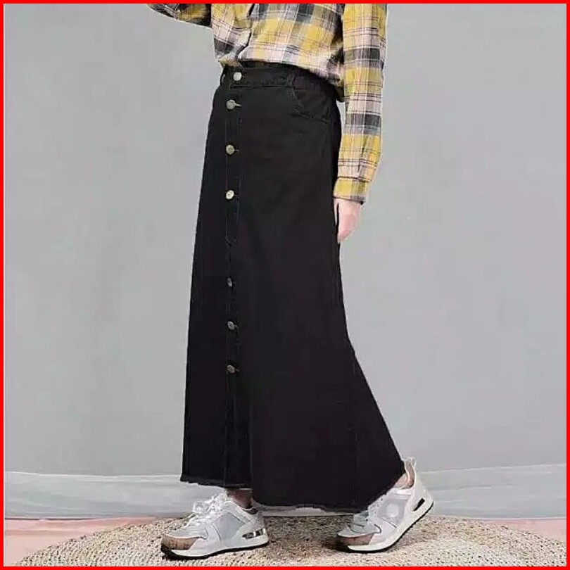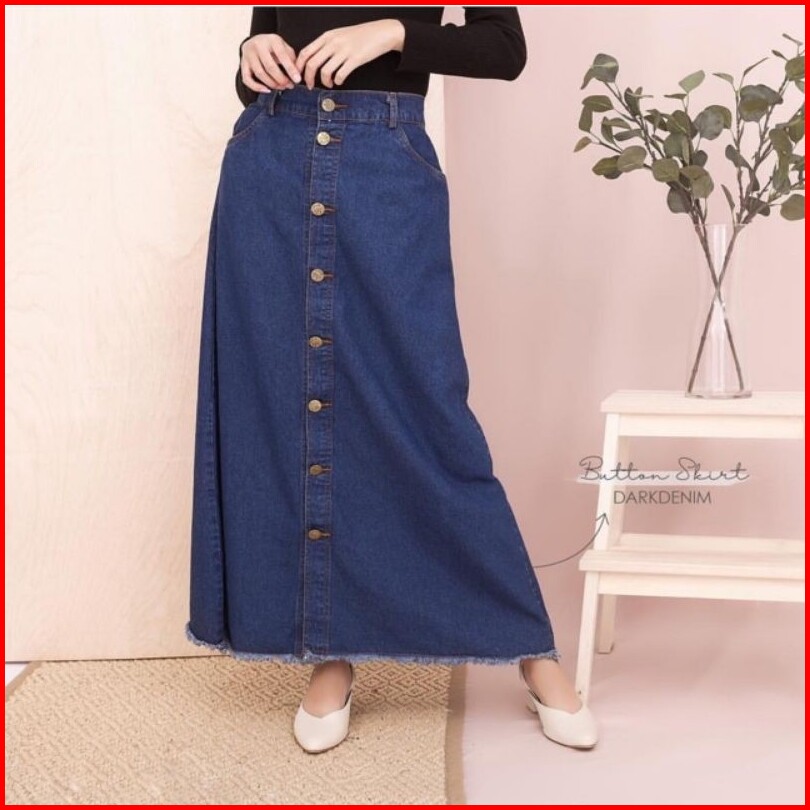 Rok Jeans Button Rawis Bahan Tebal