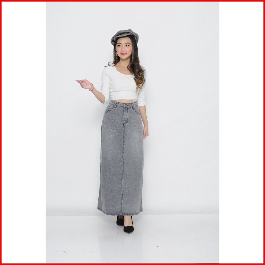 Bandidas - Rok Jeans Panjang Wanita Kancing 1 Polos