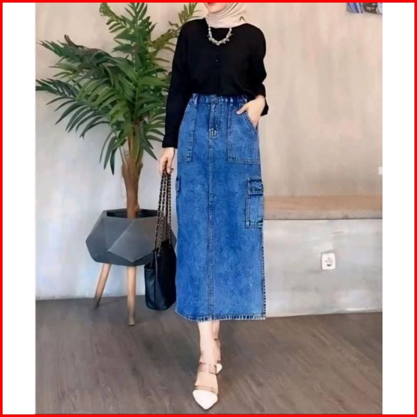 Mh Rok Jeans Cargo Bahan Jeans Skrit Korean Style