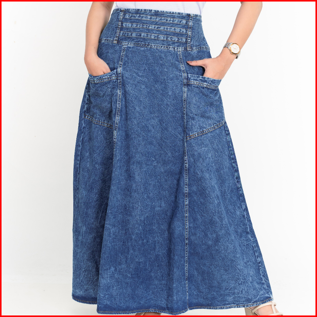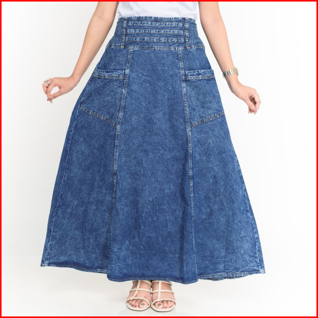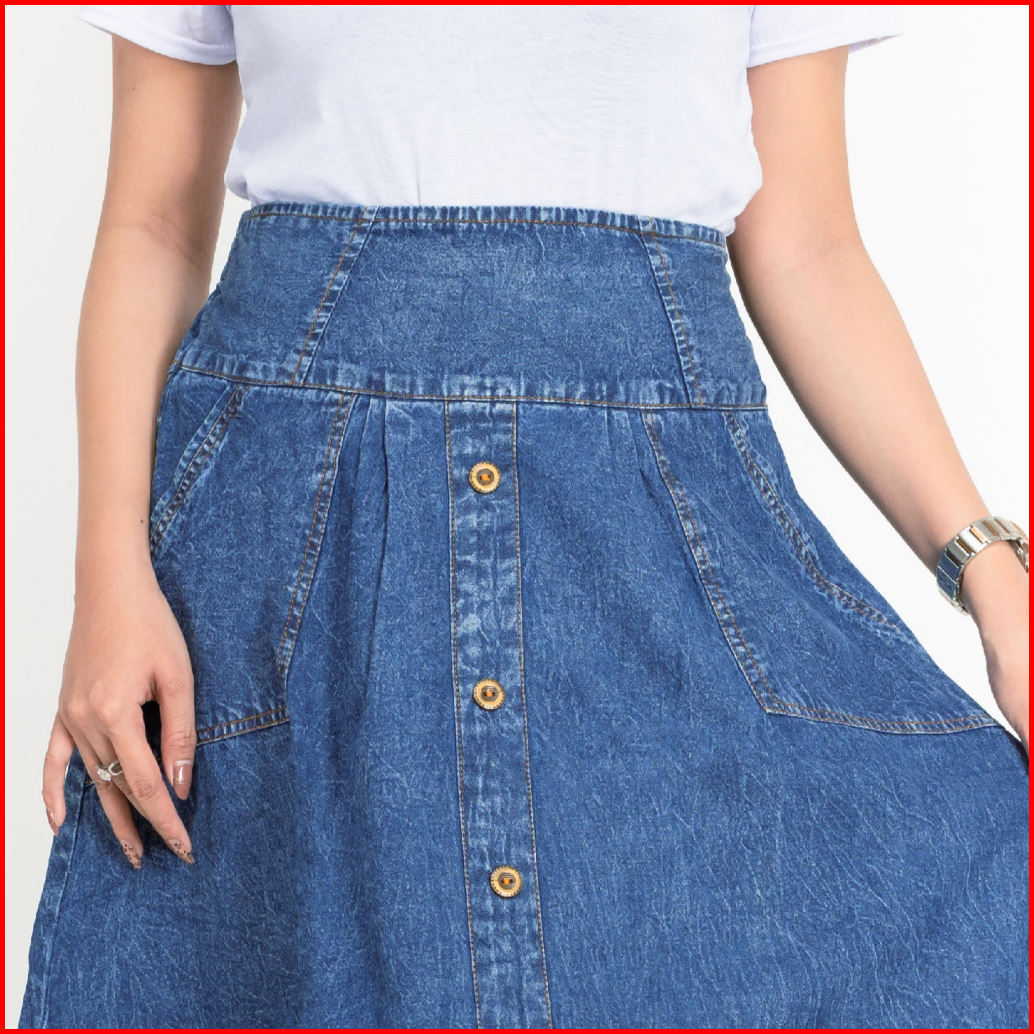 Molding - Rok Payung Jeans Premium Biru Snow Original Molding Ukuran All Size Dan Jumbo 8830
