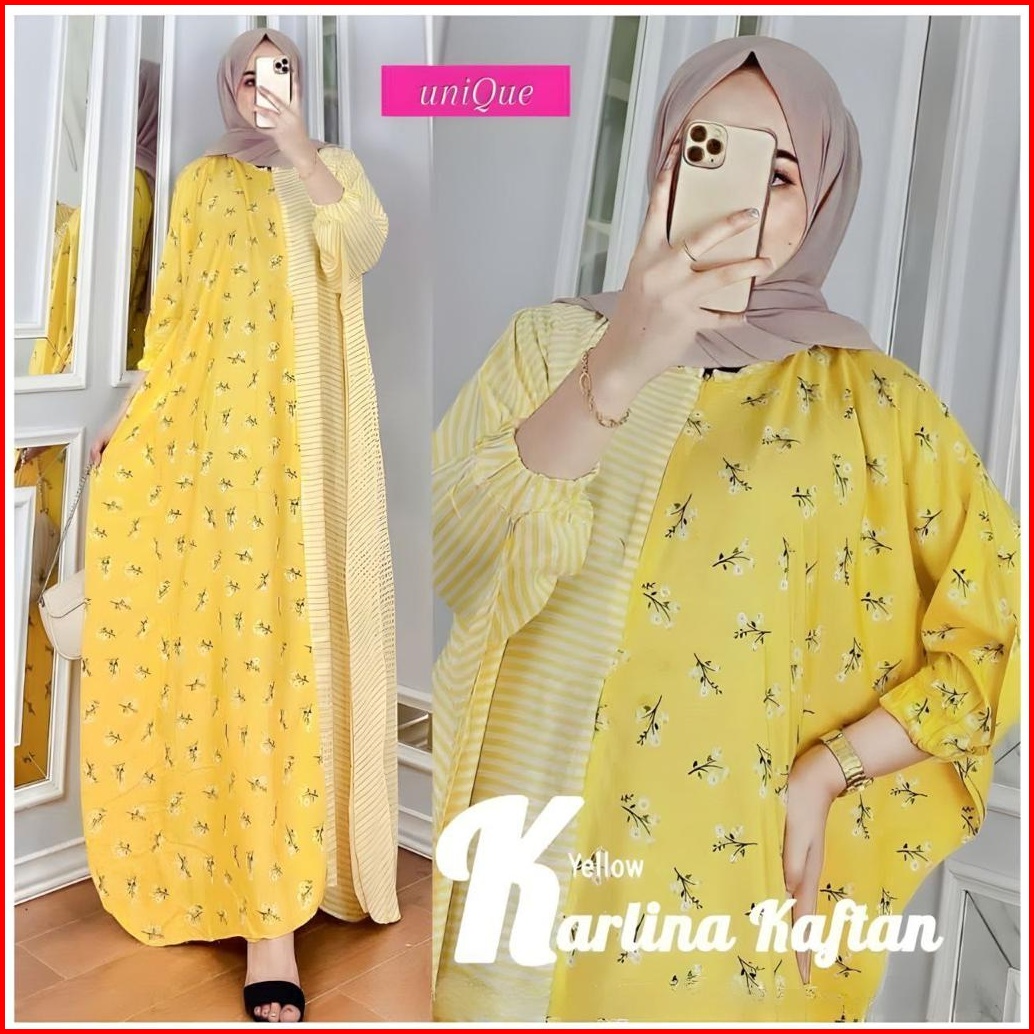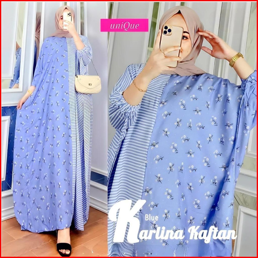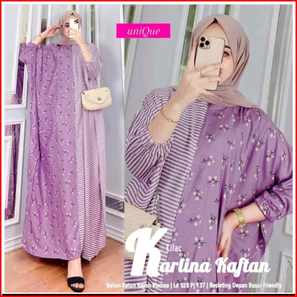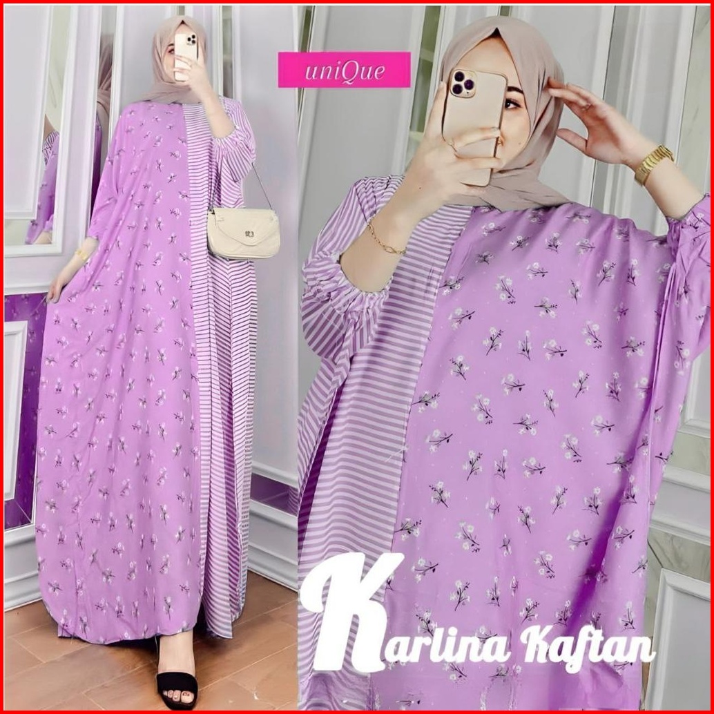 Karlina Kaftan - Kaftan Wanita Jumbo Motif Batik Bunga Garis-garis Soft Color Busui Lengan Panjang Rayon Premium Kaftan