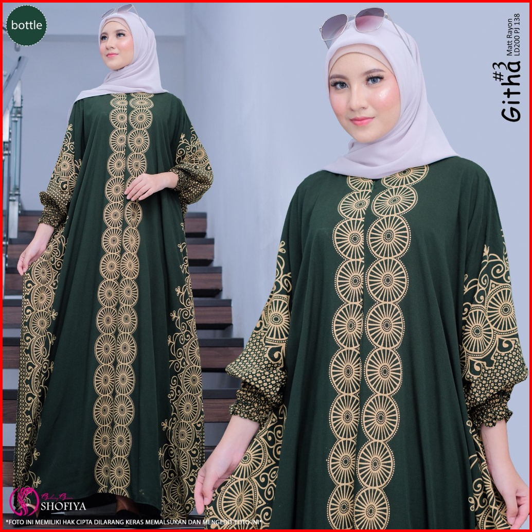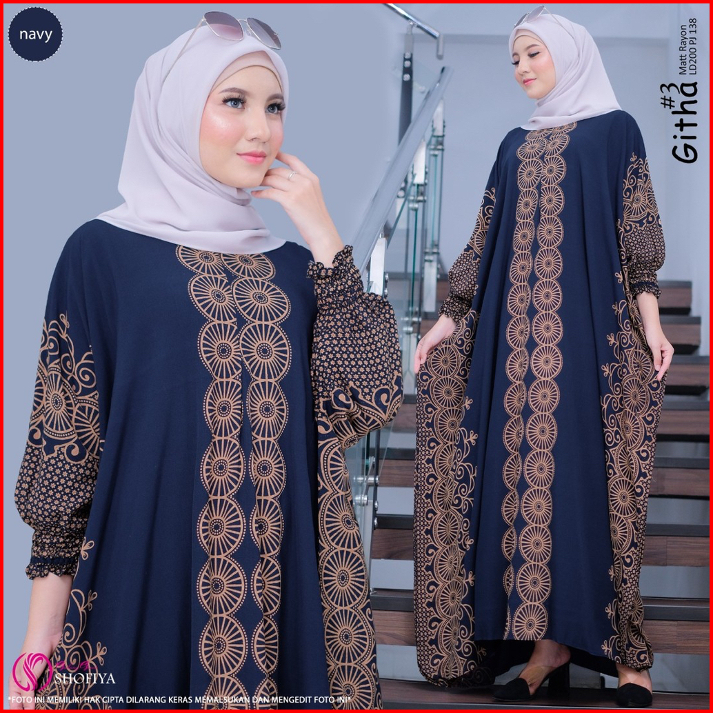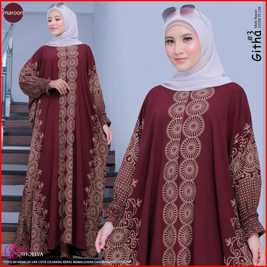 Kaftan Wanita - Githa Kaftan Kondangan Vol. 3 Jumbo Maksi Motif Roda Busui Lengan Panjang Rayon Premium By Batik A W