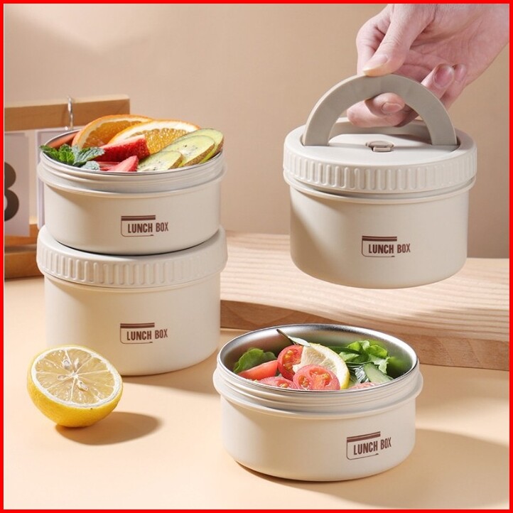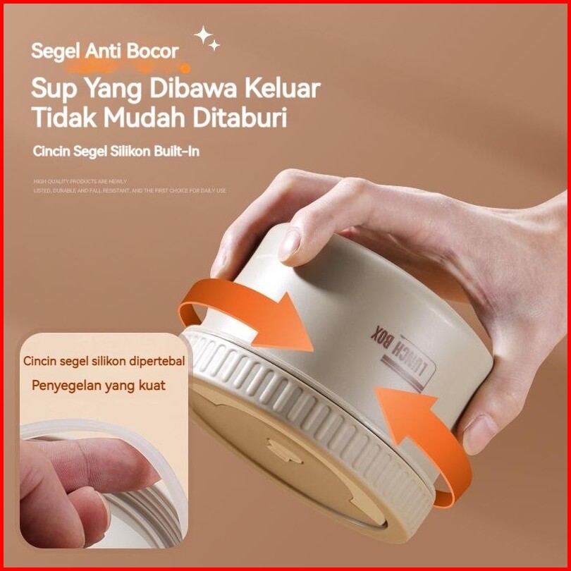 304 Stainless Steel Kotak Makan Sup Multifungsi Anti Tumpah Tempat Bulat Krim Kotak Makan Siang