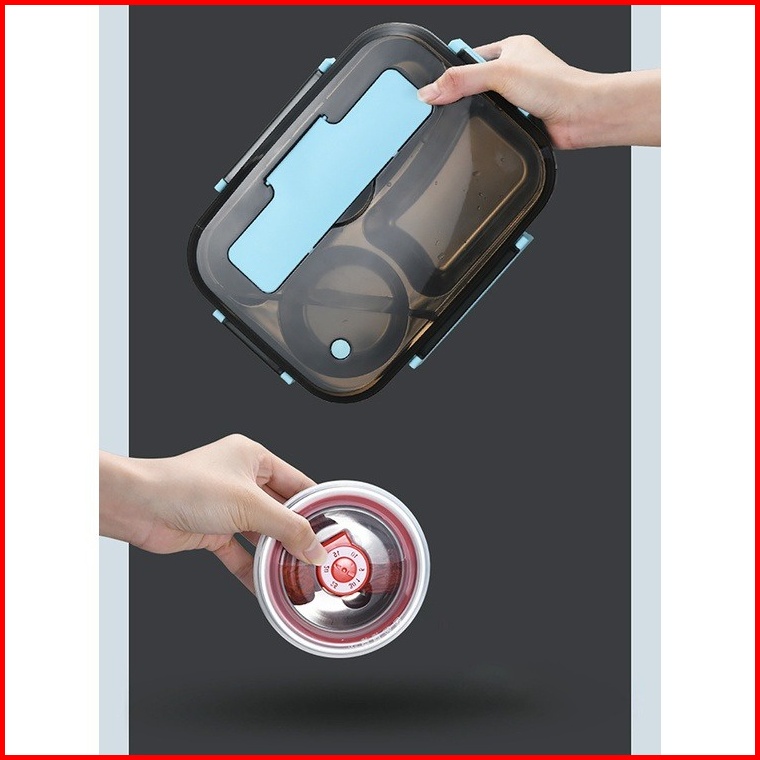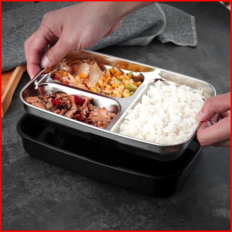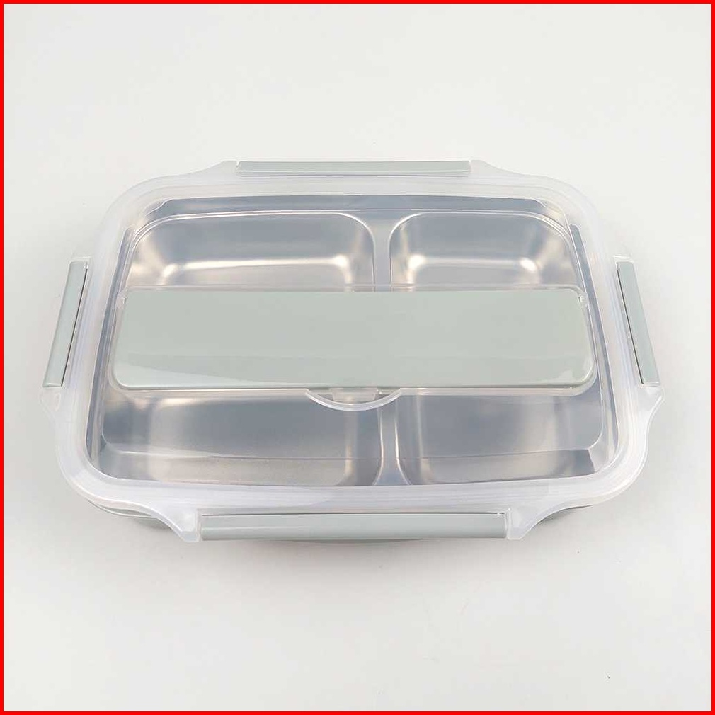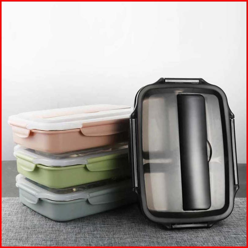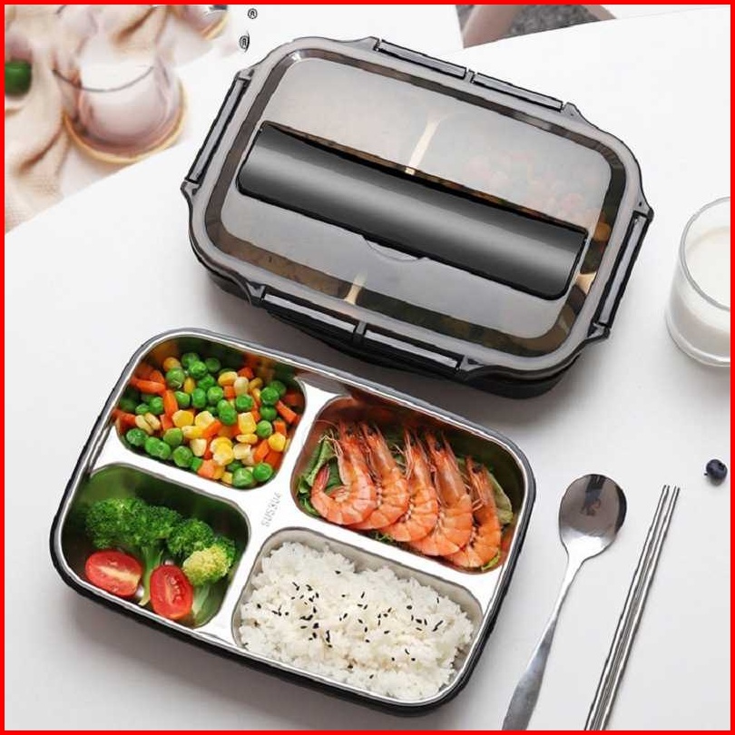 Kotak Makan Lunch Box 1000ml Free Sendok Sumpit Stainless 3 4 Sekat