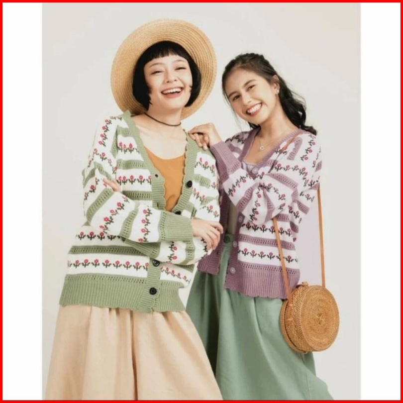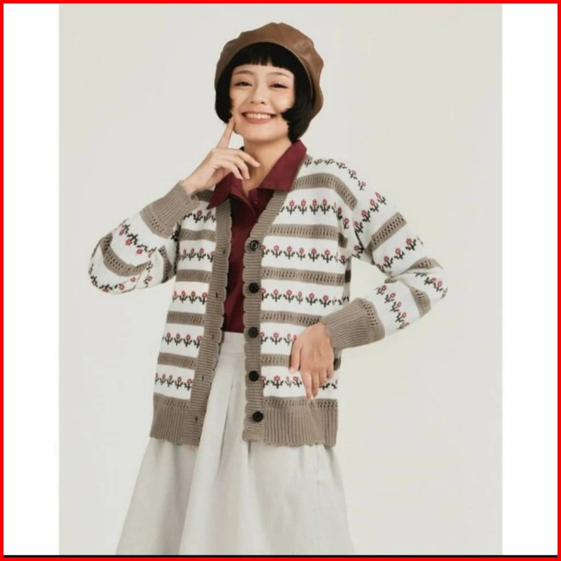 Cardigan Flowers Button Kardigan Bunga Rajut Atasan Wanita Kardigan Wanita Rajut