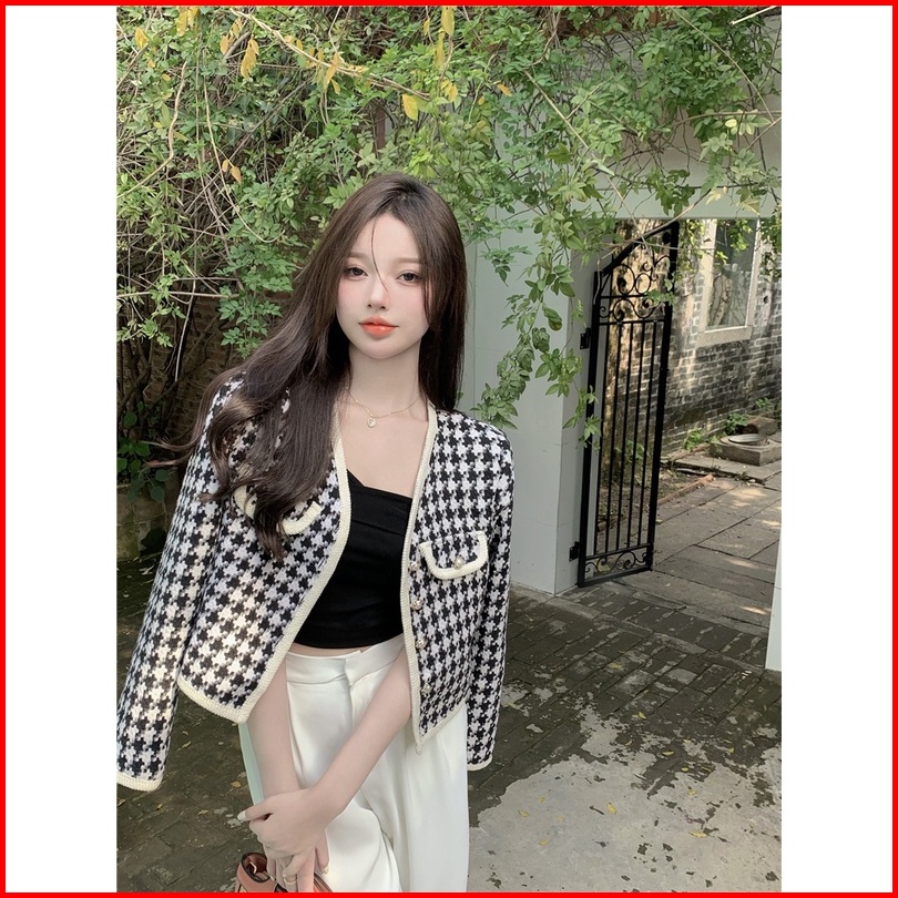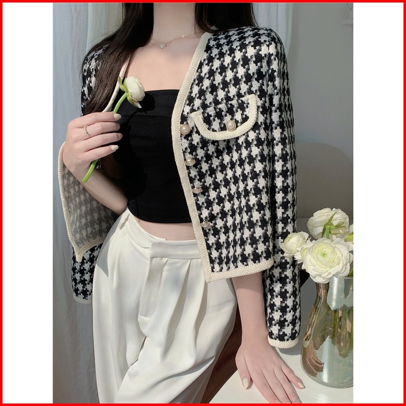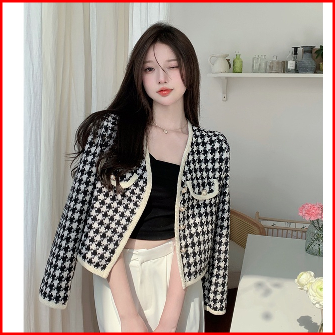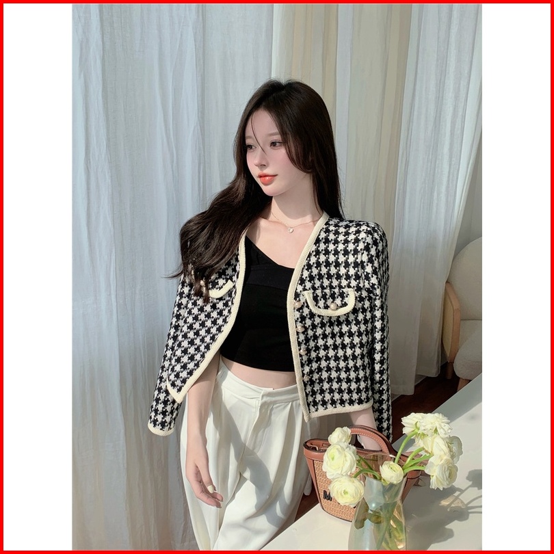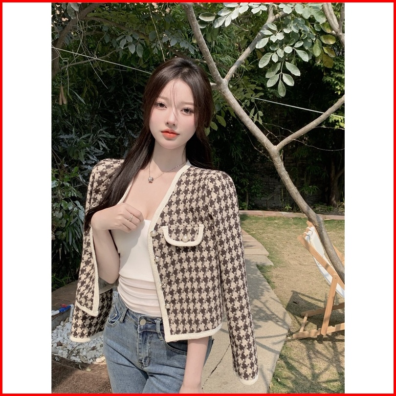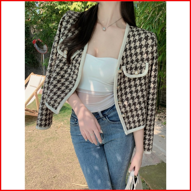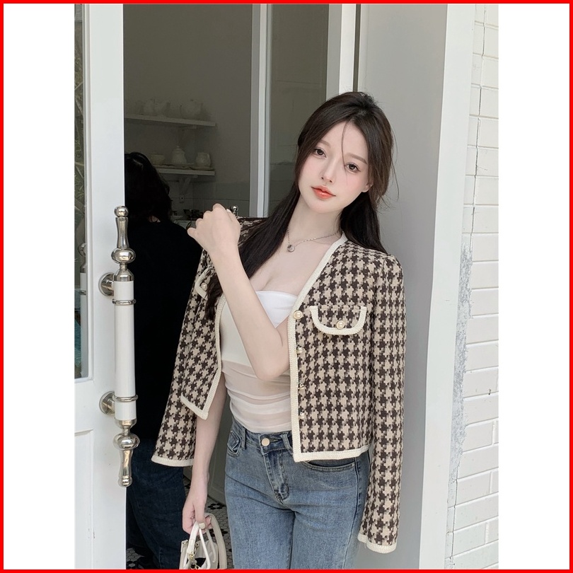 Jaket Wanita Vintage Lengan Panjang Kotak-kotak Kardigan Crop Oversize Import Baju Atasan Wanita