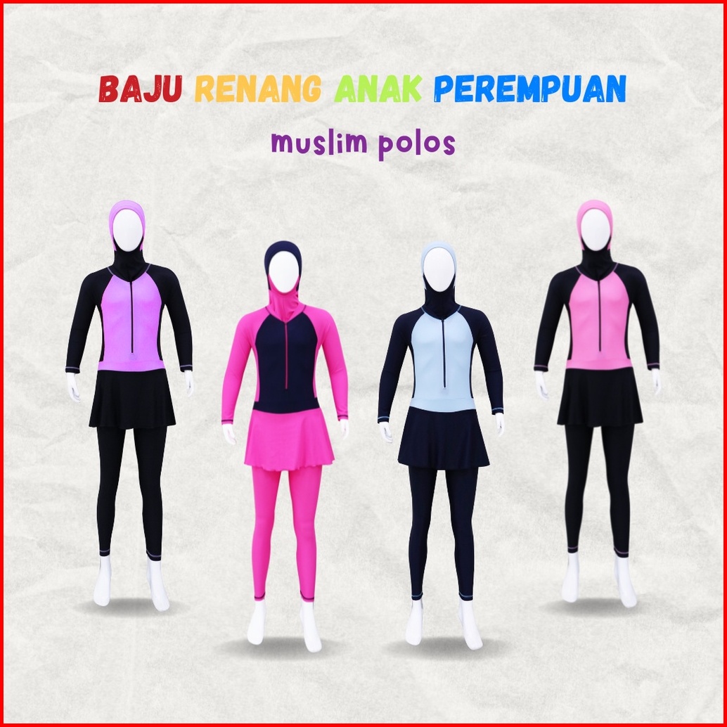 1 Set Baju Renang Anak Dan Remaja Muslim Perempuan Polos Murah Model Terbaru