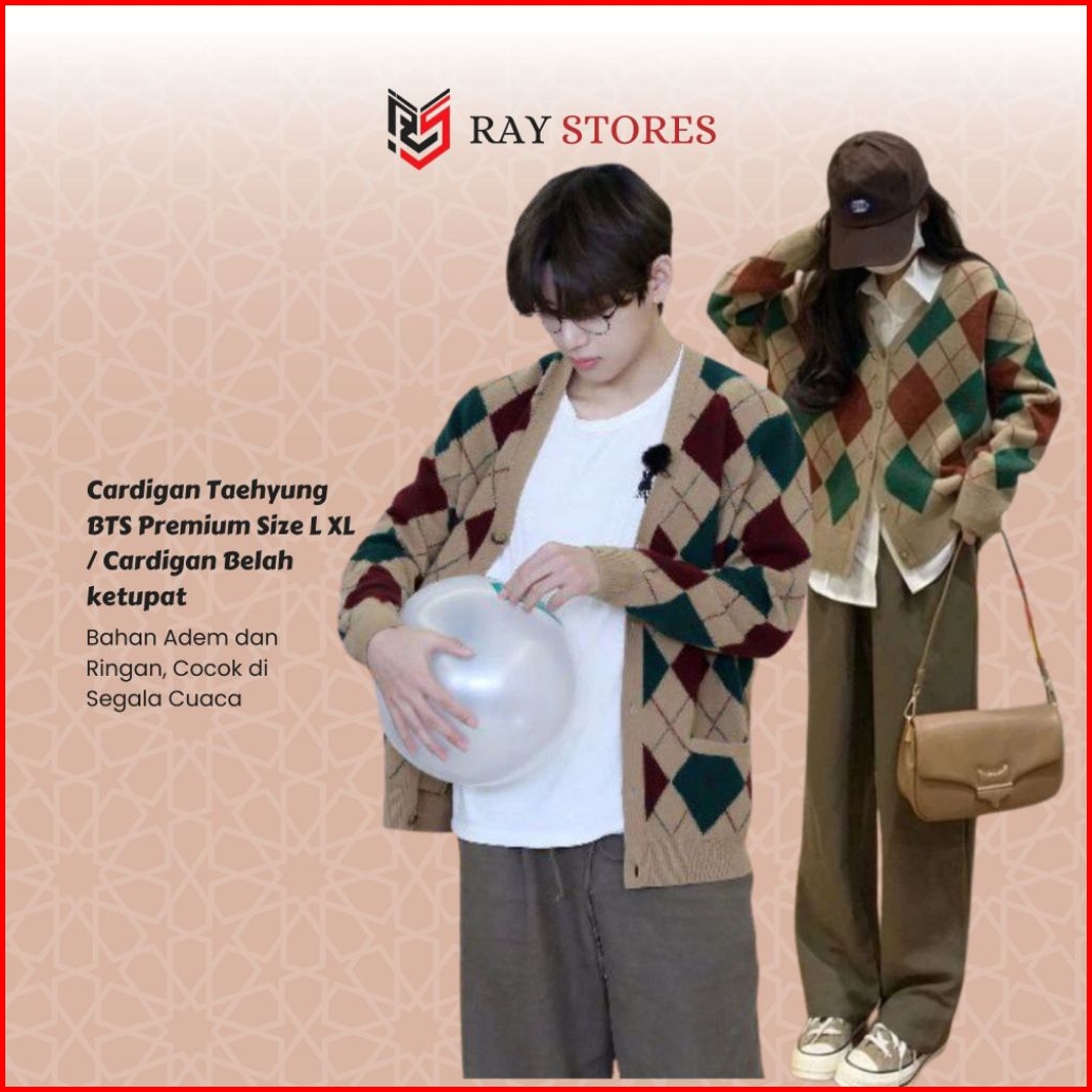 Cardigan Taehyung Bts Premium Size L Xl Cardigan Belah Ketupat Sweater Bts Taehyung Jaket Bts