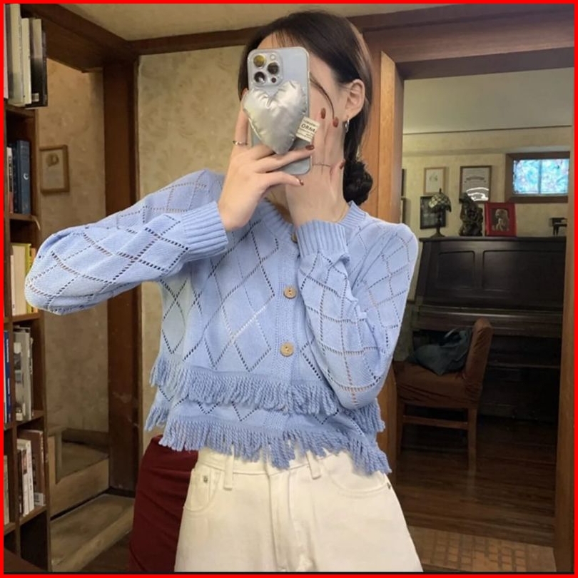 Kardigan Crop Korea Rawis Kardigan Rajut Korea Malikin Crop Top Indian