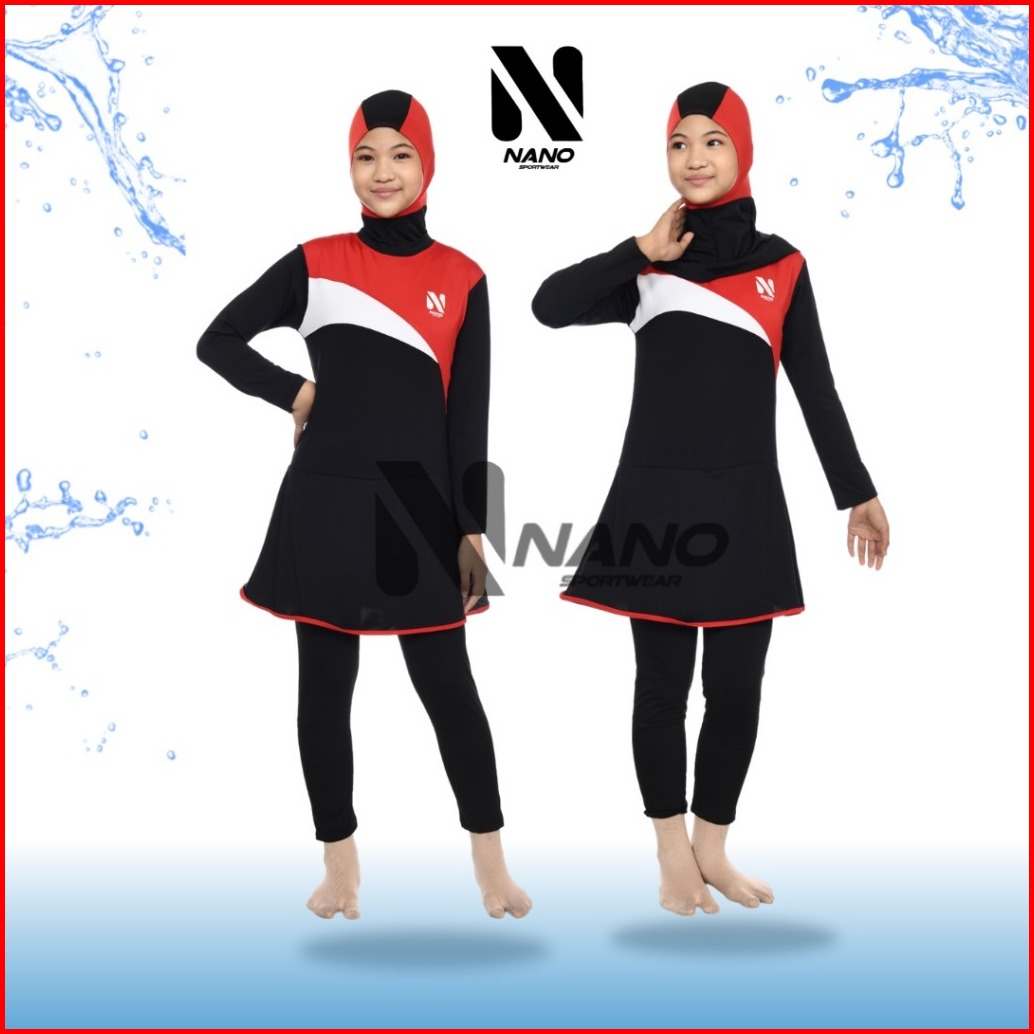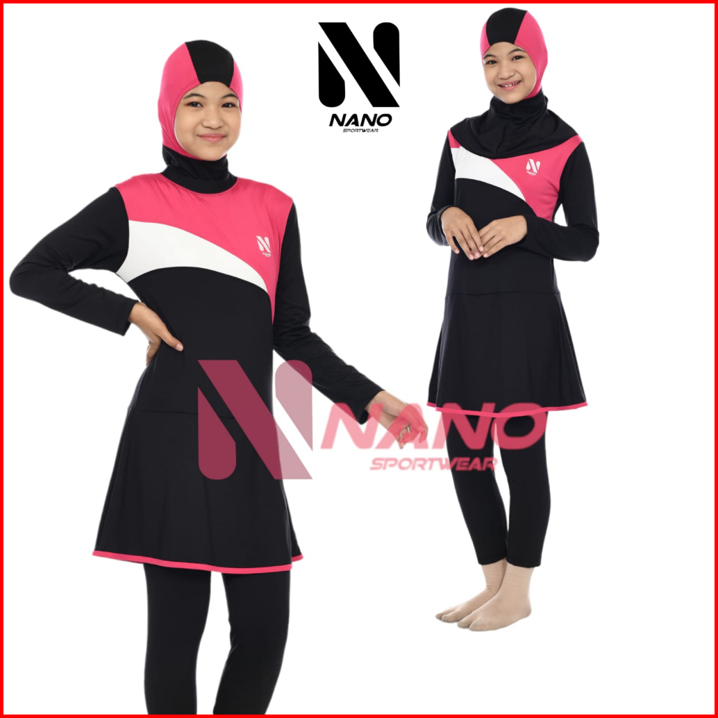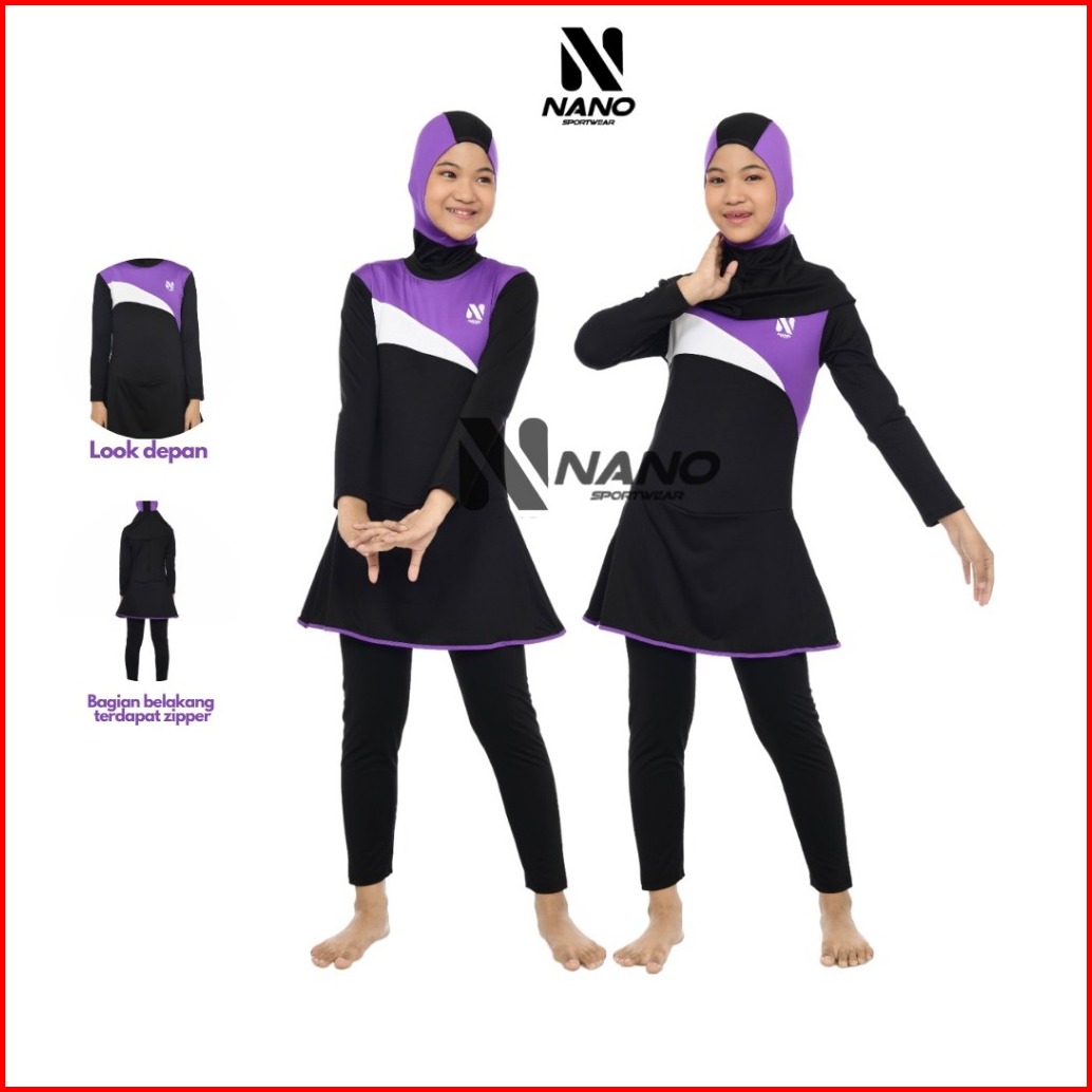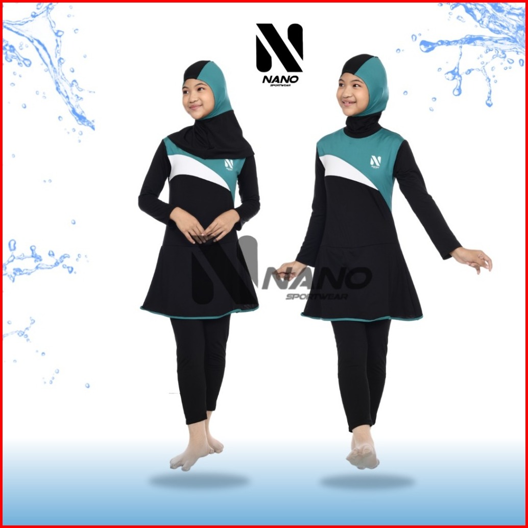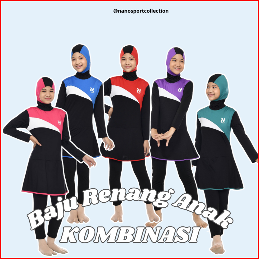 Nano Sport Setelan Baju Renang Muslim Anak Usia 7-10 Tahun Model Pelangi