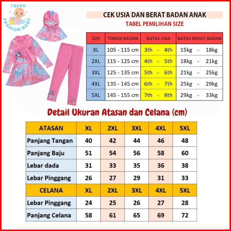 Br22 Baju Renang Anak Perempuan Muslimah Baju Renang Anak Hijab Resleting Size Xl-5xl Usia 3-8 Th