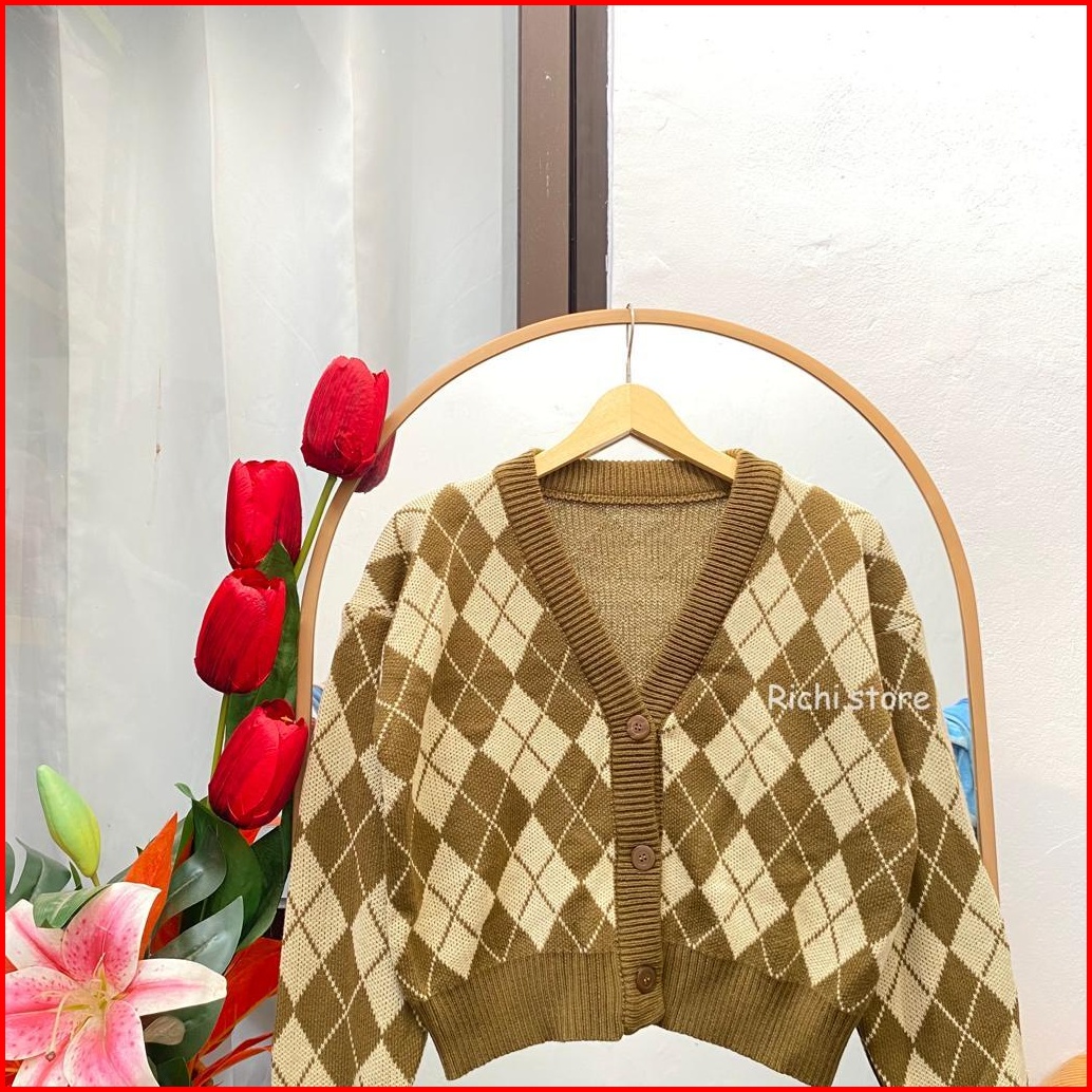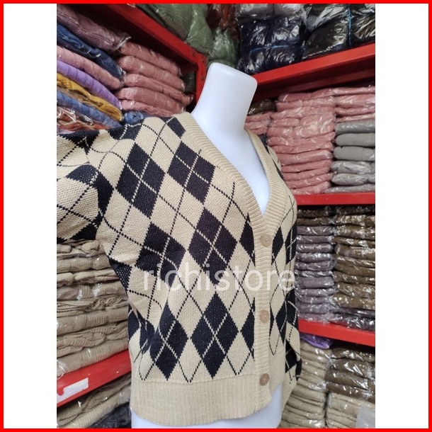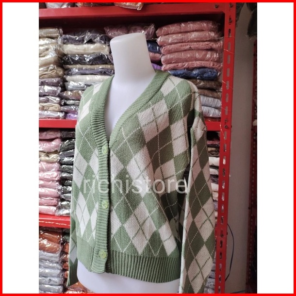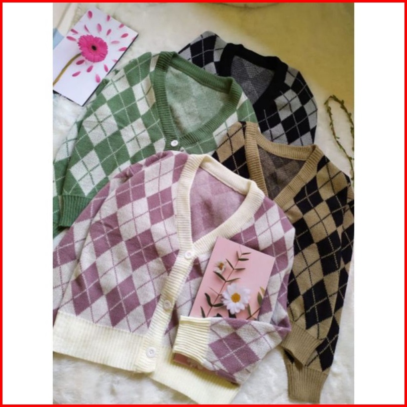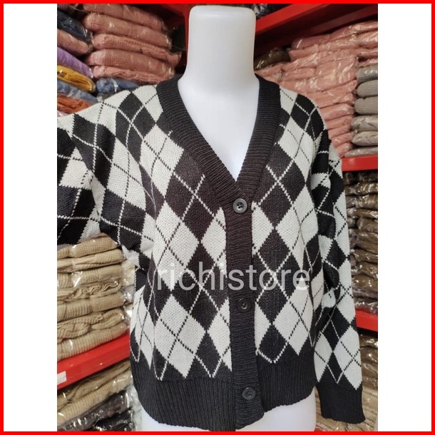 Kardigan Rajut Motif Kotak Lembut Premium Cardigan Murah Rajut