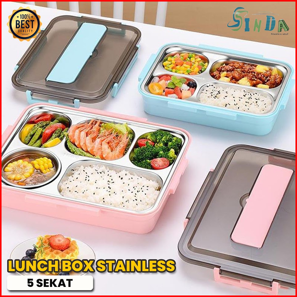 Tgm Sinda Kotak Makan 5 Sekat Stainlees Set Lunch Box Kotak Bekal