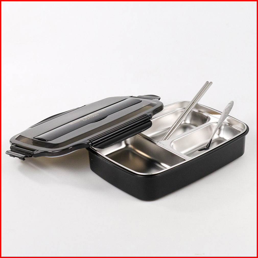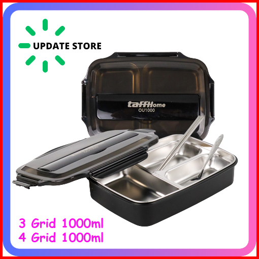 Kotak Makan Healthy Bento Lunch Box Stainless Steel 3 Grid 1000ml With Spoon Chopstick